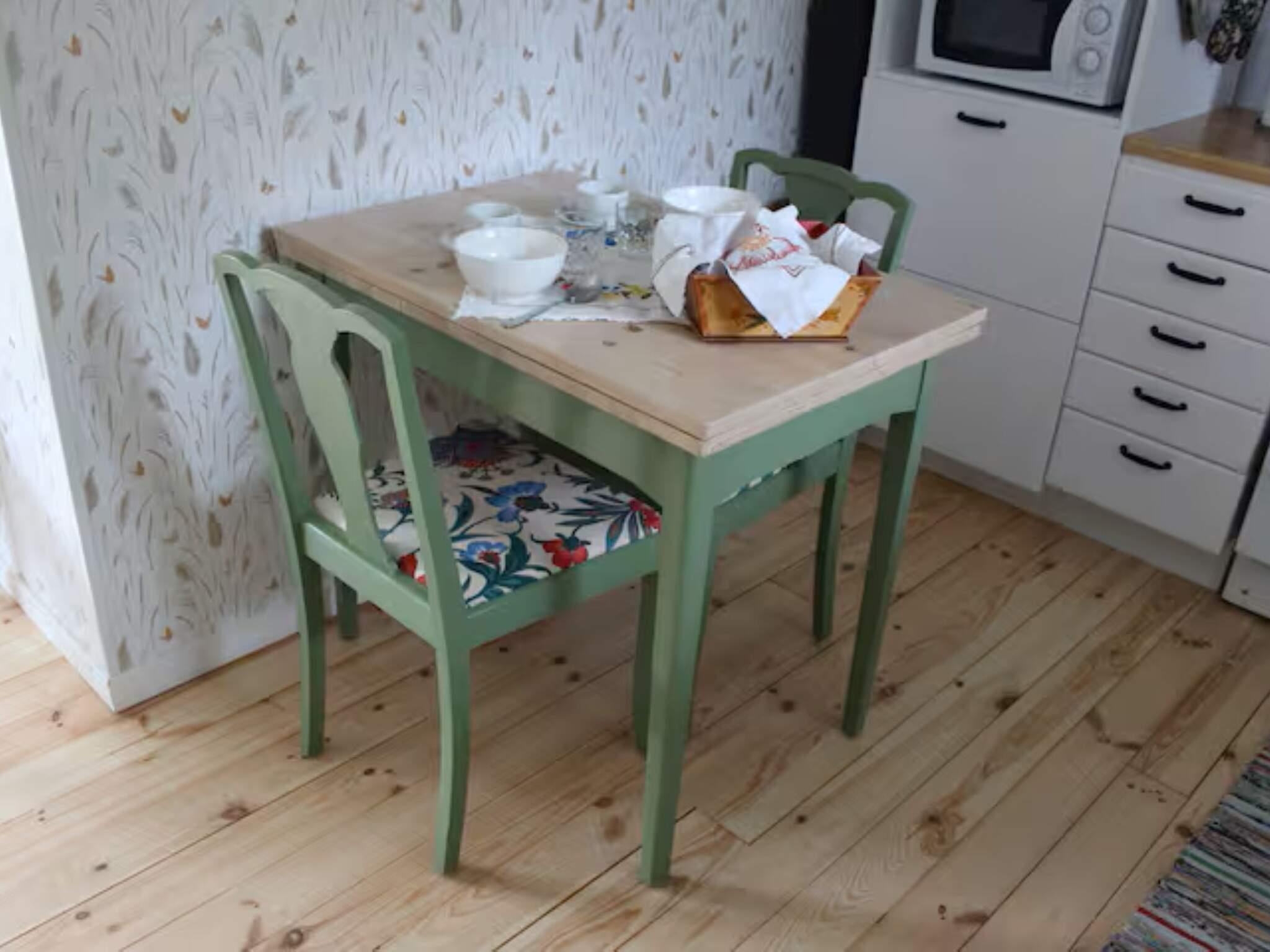Stugan har ett separat sovrum med skön dubbelsäng och ett fräscht badrum med wc, dusch, tvättställ och tvättmaskin. Köket är fullt utrustat och har ett trevligt matbord som kan dras ut när ni är fler runt bordet.