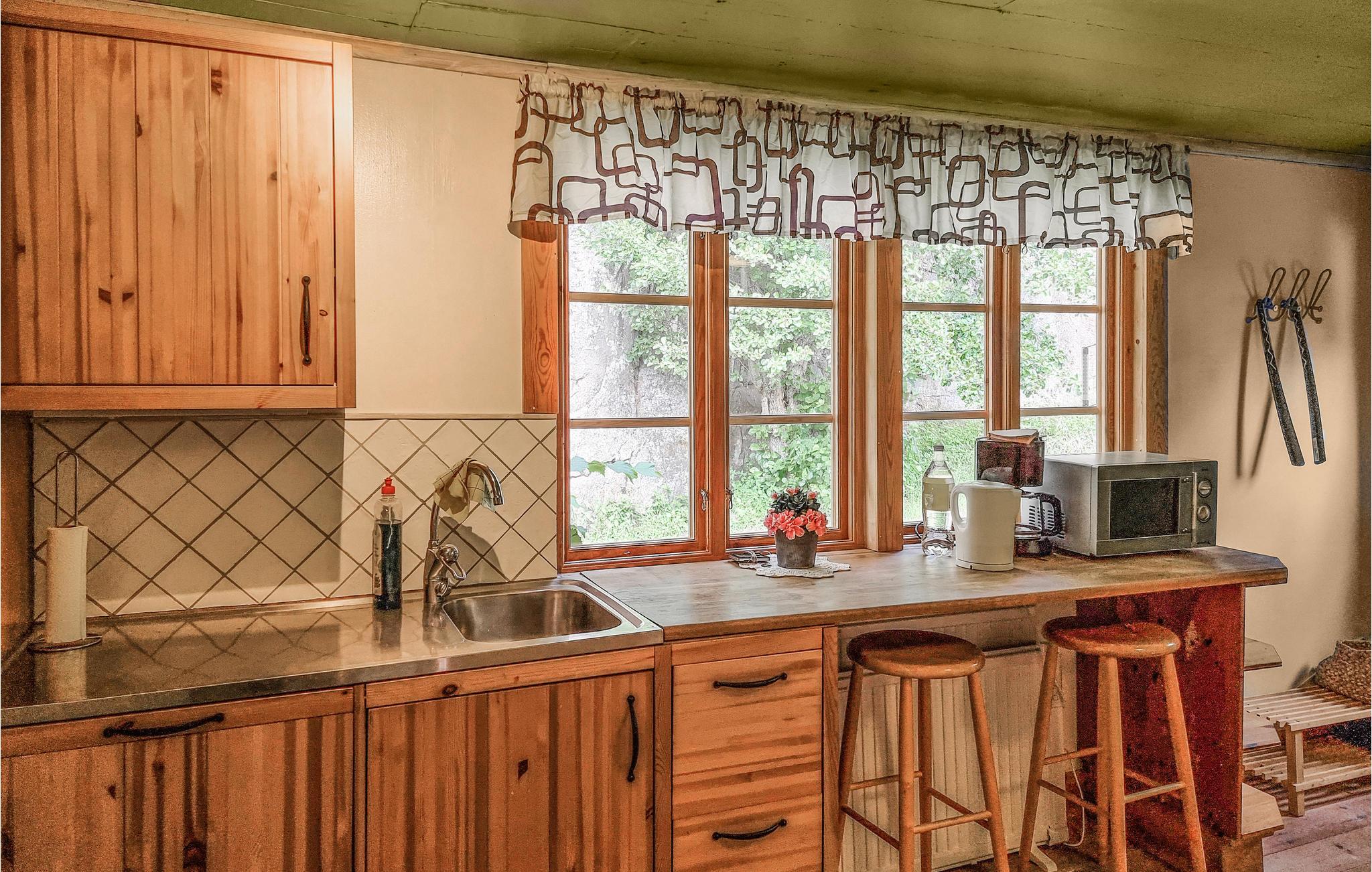 Drømmer I om en behagelig ferie med ro og nærhed til naturen? Så ville dette charmerende feriehus med udsigt over bjergene være det perfekte valg. Dette feriehus ligger nord for Göteborg, tæt på Lysekil og de dejlige fjorde på Västergötlands vestkyst. Her bor I for jer selv, omgivet af skove, enge og klipper og kan se frem til at stå op hver morgen til en fortryllende udsigt. Kom til dette hus med jeres elskede eller hele familien og tilbring en fornøjelig ferie i en afslappet atmosfære. Den naturlige ejendom byder på masser af plads til at slippe dampen af og flere hjørner, der inviterer til at blive hængende. Slap af på vandreture gennem det omkringliggende landskab og føl jer godt tilpas i naturens stilhed. I den rigtige sæson kan I tage på bær- og svampeplukning i den nærliggende skov. Gør ture langs kysten og oplev det dejlige fjordlandskab. Pak gerne picnickurven og medbring badetøjet om sommeren. Dejlige ferier venter jer her midt i naturen!