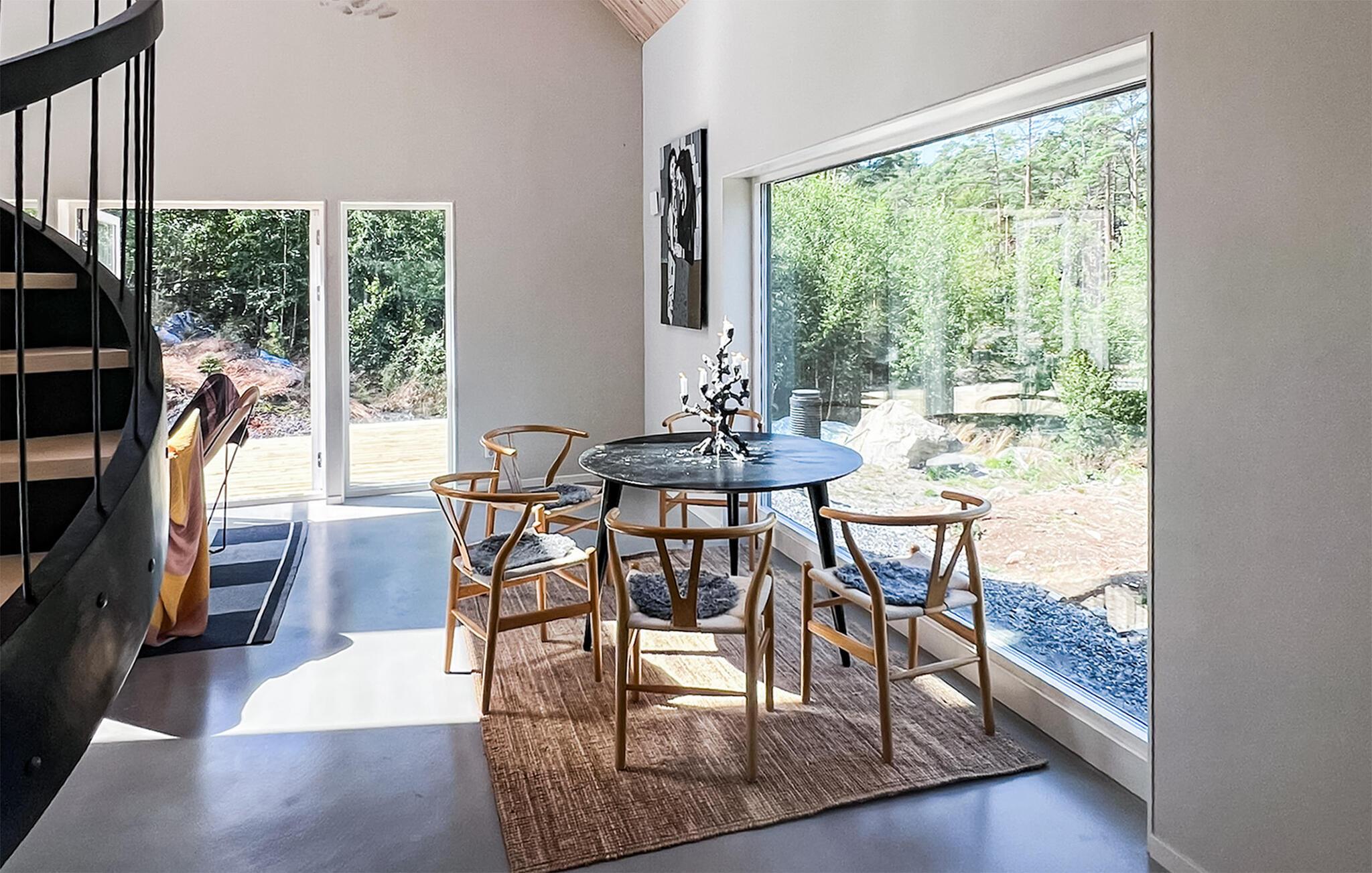 Oplev en dejlig ferie i dette idyllisk beliggende feriehus. Komfort og hygge er harmonisk forenet i dette træhus. Gulv-til-loft-vinduer lukker masser af naturligt lys ind, mens varmt træ og en komfortabel sofa inviterer til at blive hængende. Uanset om I lytter til jeres yndlingsmusik eller en podcast, læser eller tilbereder lækre måltider sammen i det moderne køkken – her kan I tilbringe dagen i jeres eget tempo. Gå udenfor med en duftende kop kaffe i de første solstråler og nyd naturens ro. Fra terrassen, der ligger ind til klipperne, har I en fantastisk udsigt over det smukke landskab. Nyd en afslappet morgenmad udenfor eller fordyb jer i jeres ferielæsning. Saml jeres medrejsende omkring grillen, når dagen går mod sin ende, og afslut aftenen på en afslappet måde. Kun få minutters gang til Nordsjön, og nyd en forfriskende dukkert i den klare sø – ideelt til en afslappende start på dagen. Udforsk de grønne omgivelser i Mölnlycke med dens rolige skovstier og hyggelige picnicområder. Tag en tur til Göteborg og oplev højdepunkter som Liseberg forlystelsespark eller det spændende Universeum Science and Experience Center. Forkæl jer selv med kulinariske lækkerier og prøv det regionale køkken.