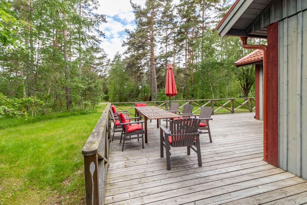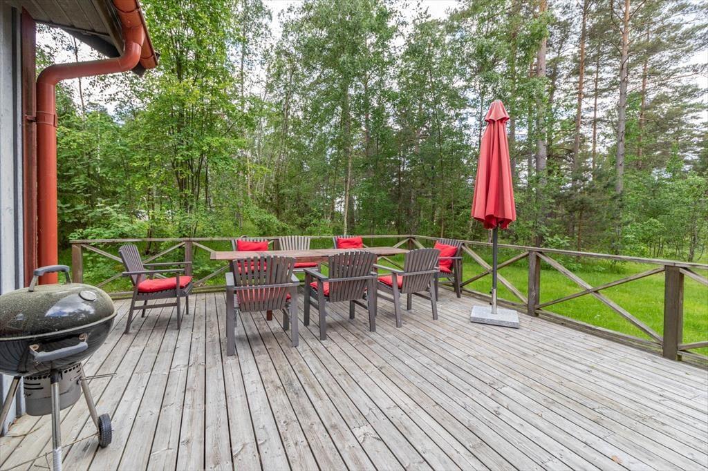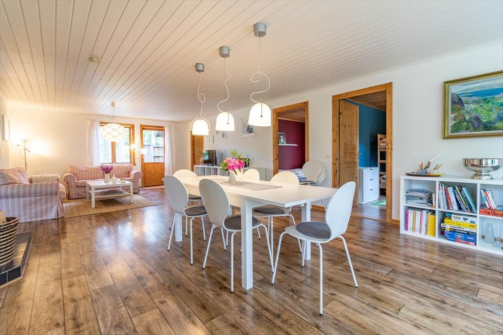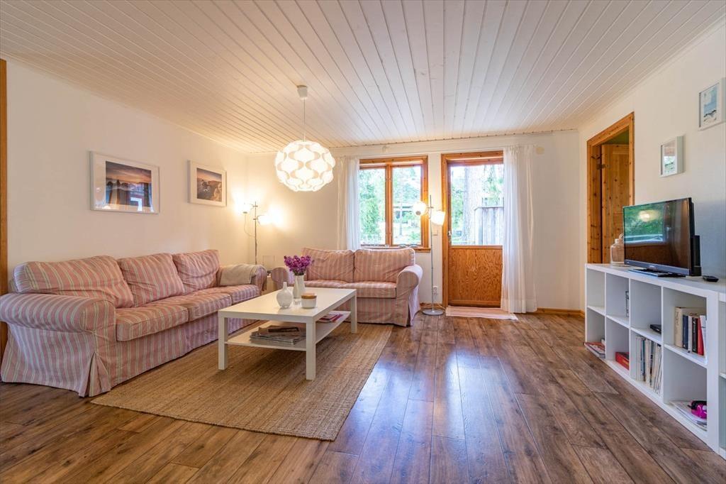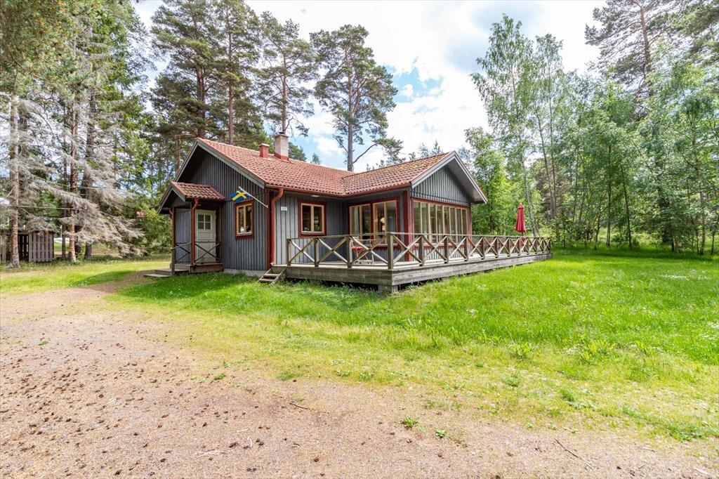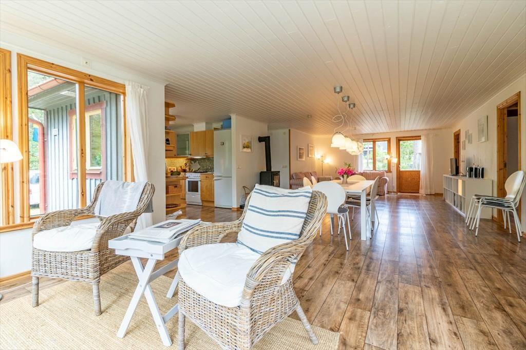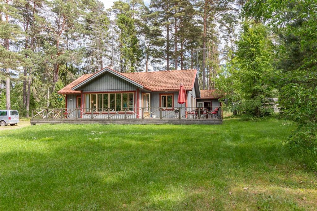 Sommerhus i Mönsterås, Sydsverige, med plads til 8 voksne. Der er en hyggelig indretning med bl.a. brændeovn, og du finder desuden vaskemaskine, opvaskemaskine og tørretumbler i boligen.