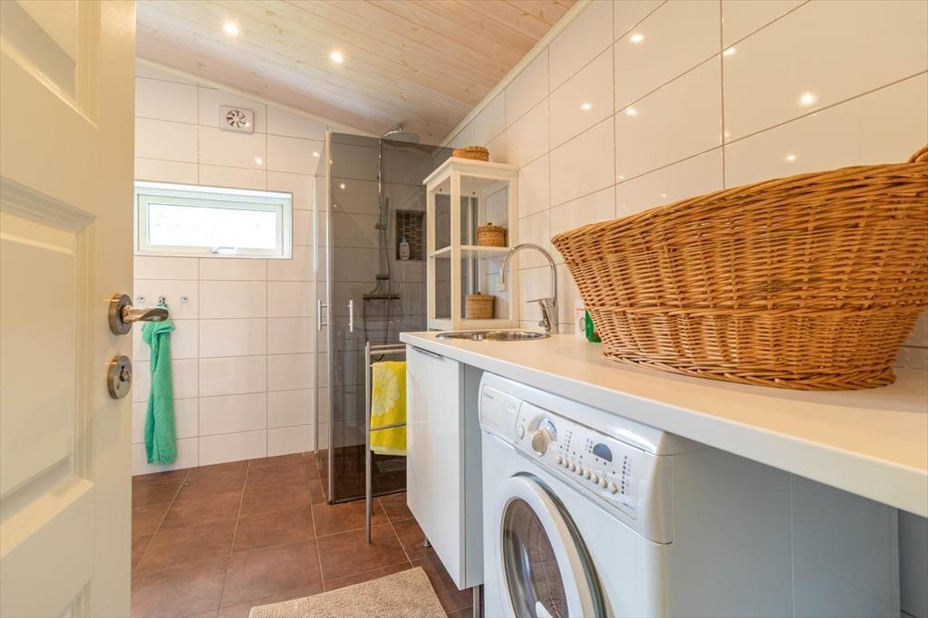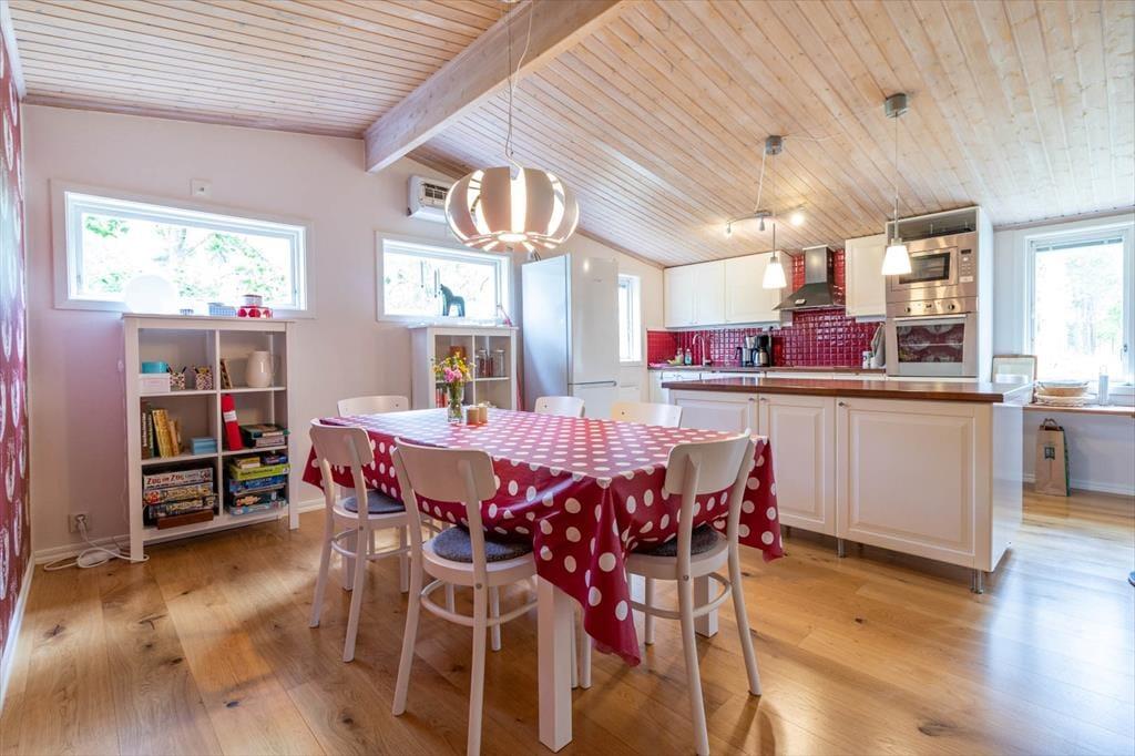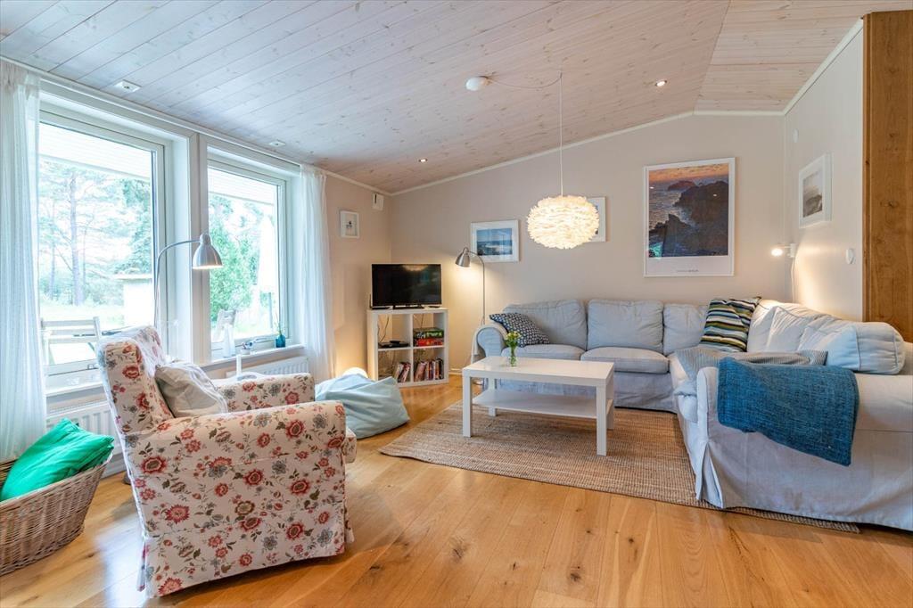 Sommerhus i Mönsterås, Sydsverige, med plads til 8 voksne. Der er en hyggelig indretning med bl.a. brændeovn, og du finder desuden vaskemaskine, opvaskemaskine og tørretumbler i boligen.