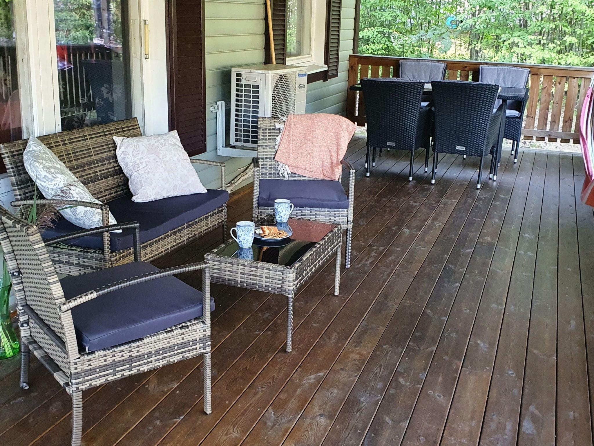 The house is well-equipped for the winter, with electric radiators, a heat pump and a new façade with good insulation, which was added in 2011. The house has a veranda on the front and to the rear.