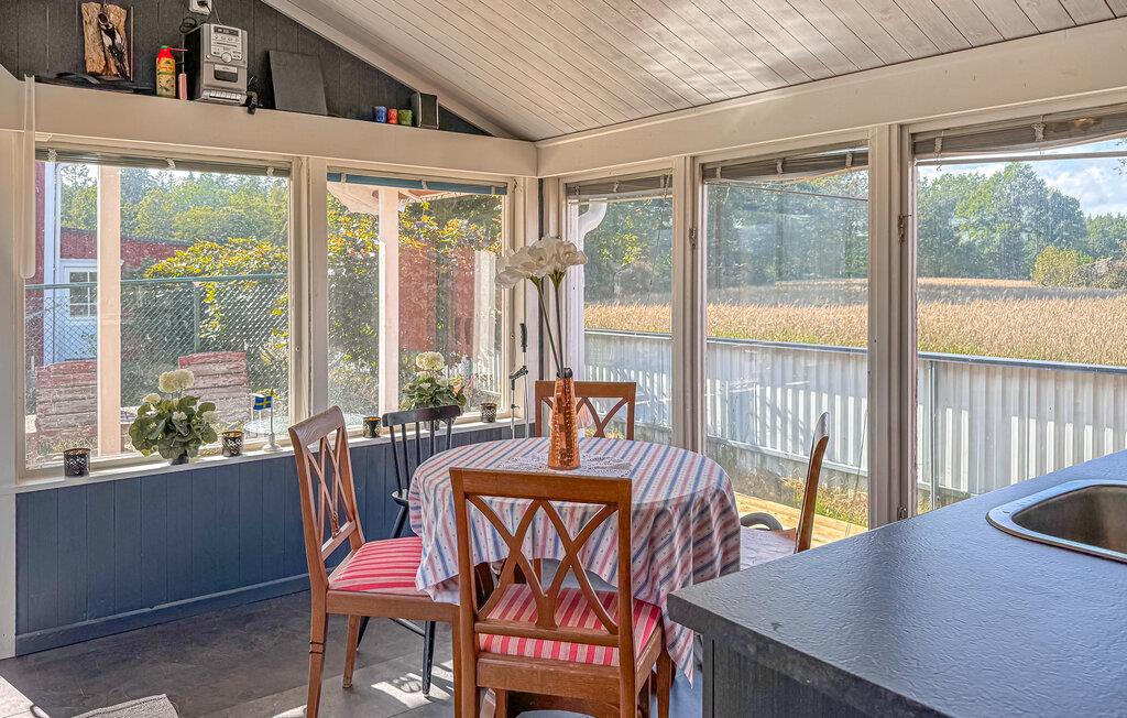 Velkommen til dette hyggelige feriehus, hvor I kan lægge hverdagens verden langt bag jer i en behagelig atmosfære. Tilbered lækre måltider, planlæg jeres eventyr over afslappede måltider i den lyse spisestue, og afslut en lang dag i naturen med et brætspil eller en fængslende bog.