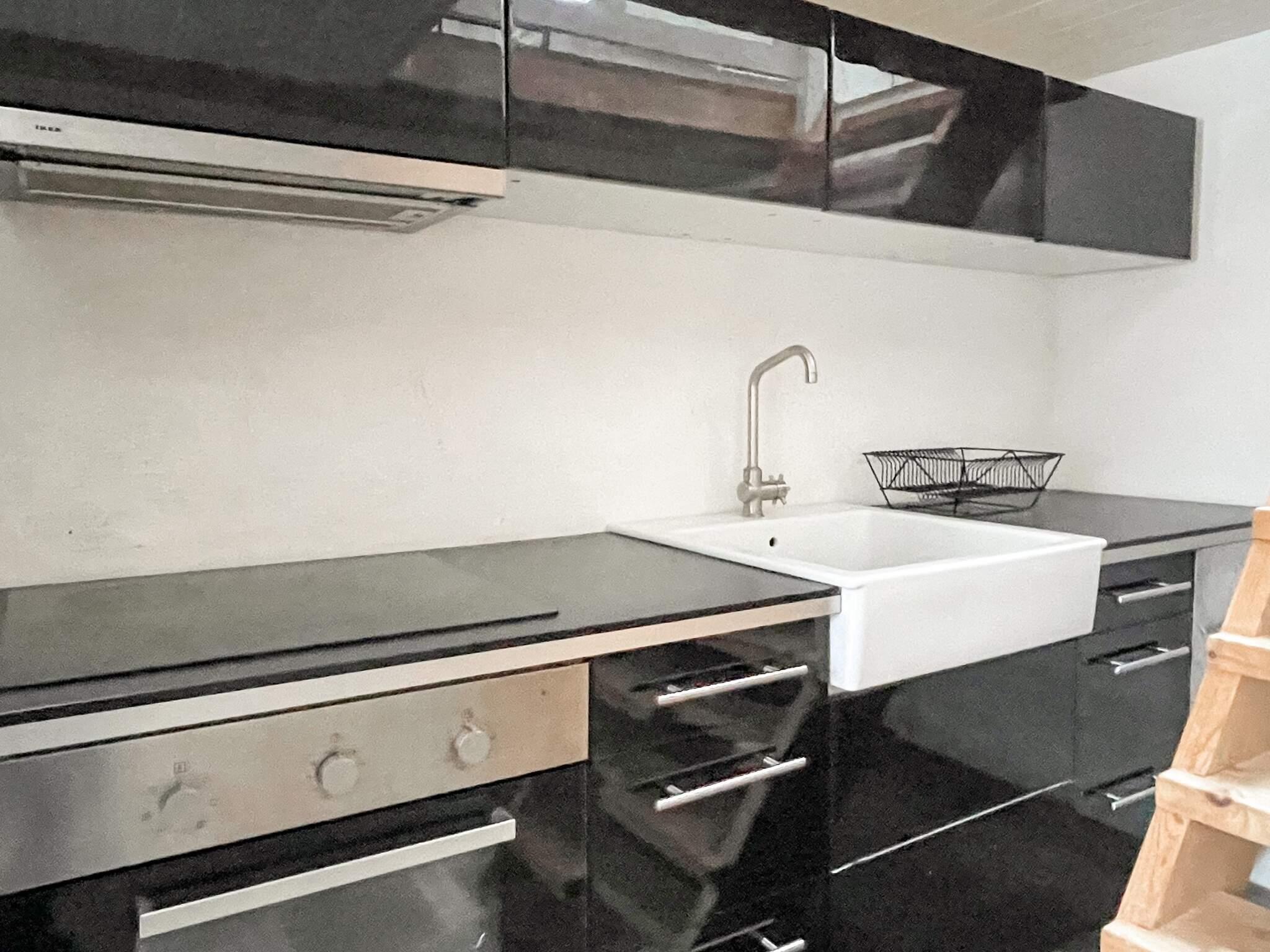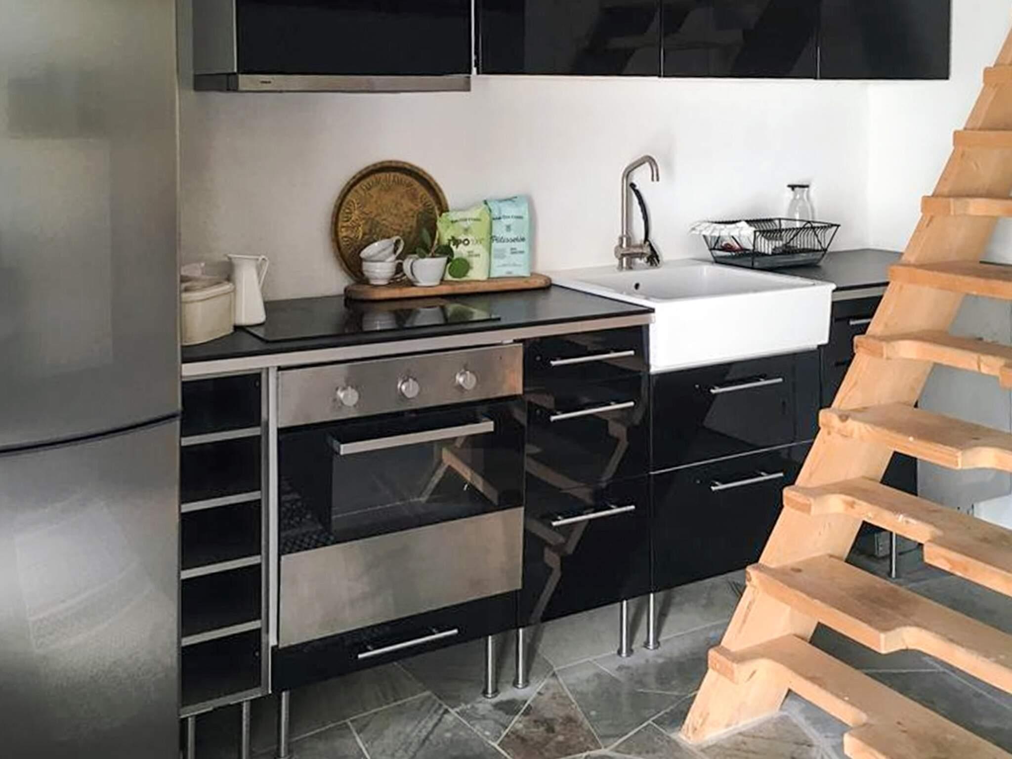 Køkken: El-komfur, køle-frys, mikroovn, kaffemaskine, opvaskemask., vand fra brønd