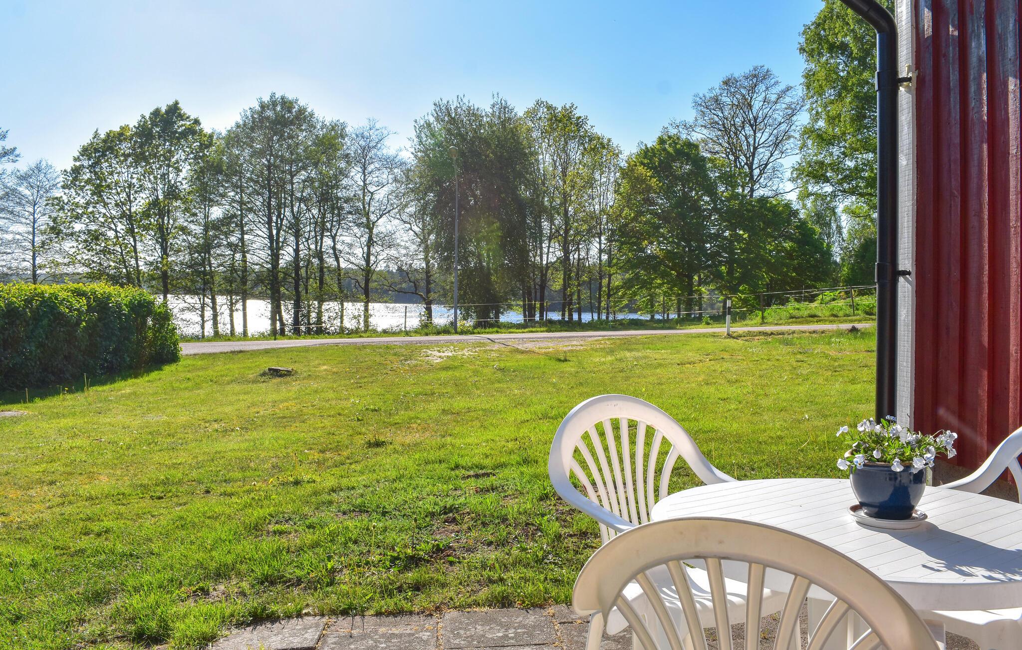 Dette praktiske og hyggelige feriehus tilbyder alt, hvad I behøver for en afslappende ferie. Indretningen er funktionel og skaber en behagelig atmosfære. Den åbne opholdsstue lægger op til hyggelige stunder, hvad enten det er ved middagsbordet eller til afslapning efter en oplevelsesrig dag. Køkkenet er veludstyret, så I nemt kan tilberede jeres yndlingsretter. Store vinduer lukker masser af dagslys ind og giver en smuk udsigt over søen.