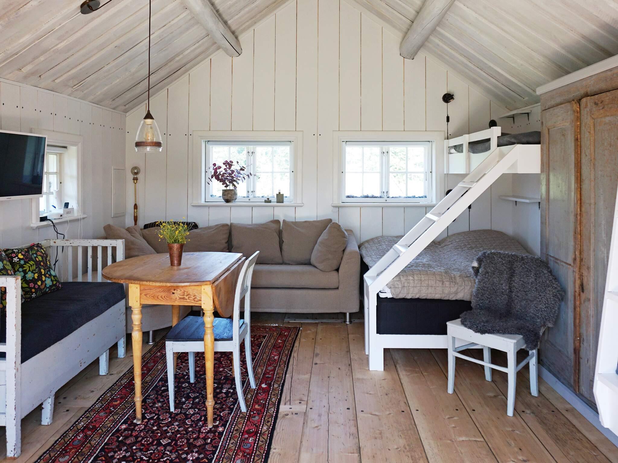 Välkomna till ett gammalt stenmagasin från 1916 som nyligen renoverats. Ni kommer in i stugan på baksidan där ni möts av ett trevligt trädäck som leder er in till stugan. I stugan är det en öppen planlösning där kök, sällskapsdel och sängar förenas i ett. Perfekt för lilla familjen! Via den trädäckade uteplatsen når ni wc och dusch i separat liten stuga. Insynskyddad altan där ni kan grilla och njuta av den vackra och fridfulla vyn över de grönskande omgivningarna. Hönshus intill med mycket fina höns som går fritt och ger er möjlighet till färska ägg! Gårdsbutik med bl. a. lammskinn och ägg.