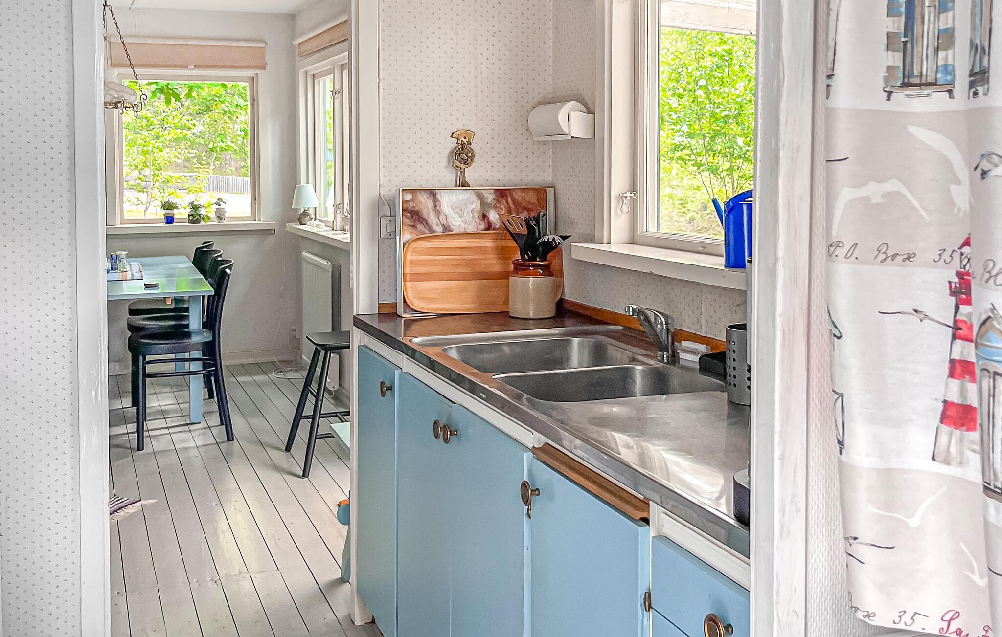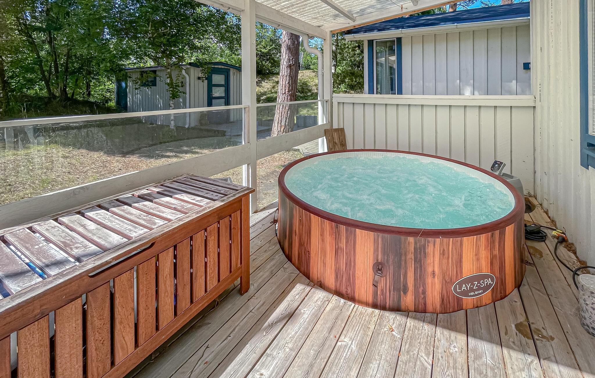 Forkæl jer selv med en afslappende ferie i dette charmerende feriehus med spabad. Dette karakterfulde hus er perfekt til en afslappende pause fra hverdagen. En stor sofa, komfortable lænestole og farverige detaljer skaber en atmosfære, hvor I hurtigt kan slappe af og lade op. Hyg jer med en kop te og en god bog – og når det bliver køligere udenfor, sørger den norske brændeovn for hyggelig varme og en særlig hygge. Gå ud på terrassen om morgenen med en duftende kaffe og nyd den friske luft, der blæser ind fra havet. Nyd en lækker morgenmad, planlæg jeres aktiviteter for den næste dag, eller spring i spabadet for en forfriskende dukkert. Om aftenen kan I samle familie eller venner omkring en grillfest og afslutte dagen på en afslappet måde. Kun få meter væk venter den endeløse sandstrand Mellbystrand på jer – ideel til svømning, solbadning eller lange gåture ved havet. De omkringliggende skove er også ideelle til vandreture og cykling i naturen. I det omkringliggende område finder I seværdige udflugtssteder som det charmerende Laholm, den elegante badeby Båstad eller den livlige by Halmstad med hyggelige caféer, museer og små butikker.