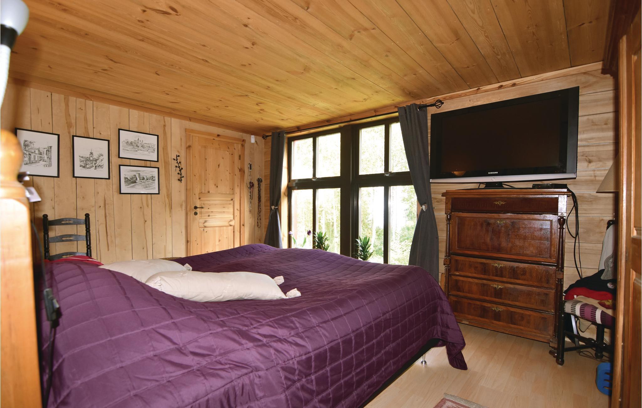 Huset imponerer med højt til loftet, og den åbne pejs og udestuen gør det meget hyggeligt. Den åbne terrasse vender ud mod skovkanten. Der er tre soveværelser og en hems til rådighed i feriehuset. Køkken og badeværelse har gode faciliteter.