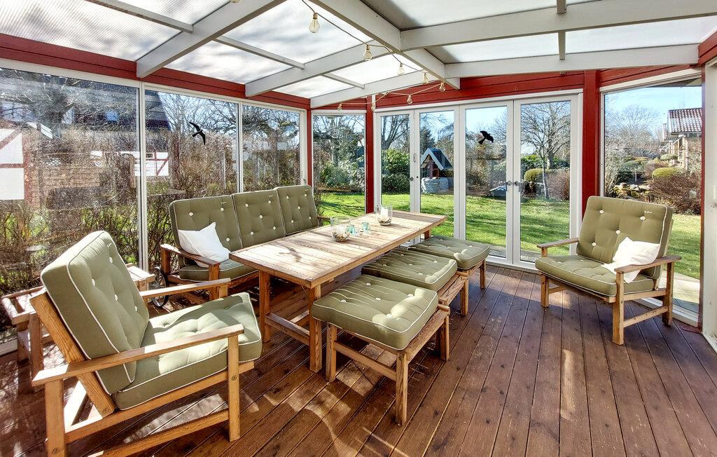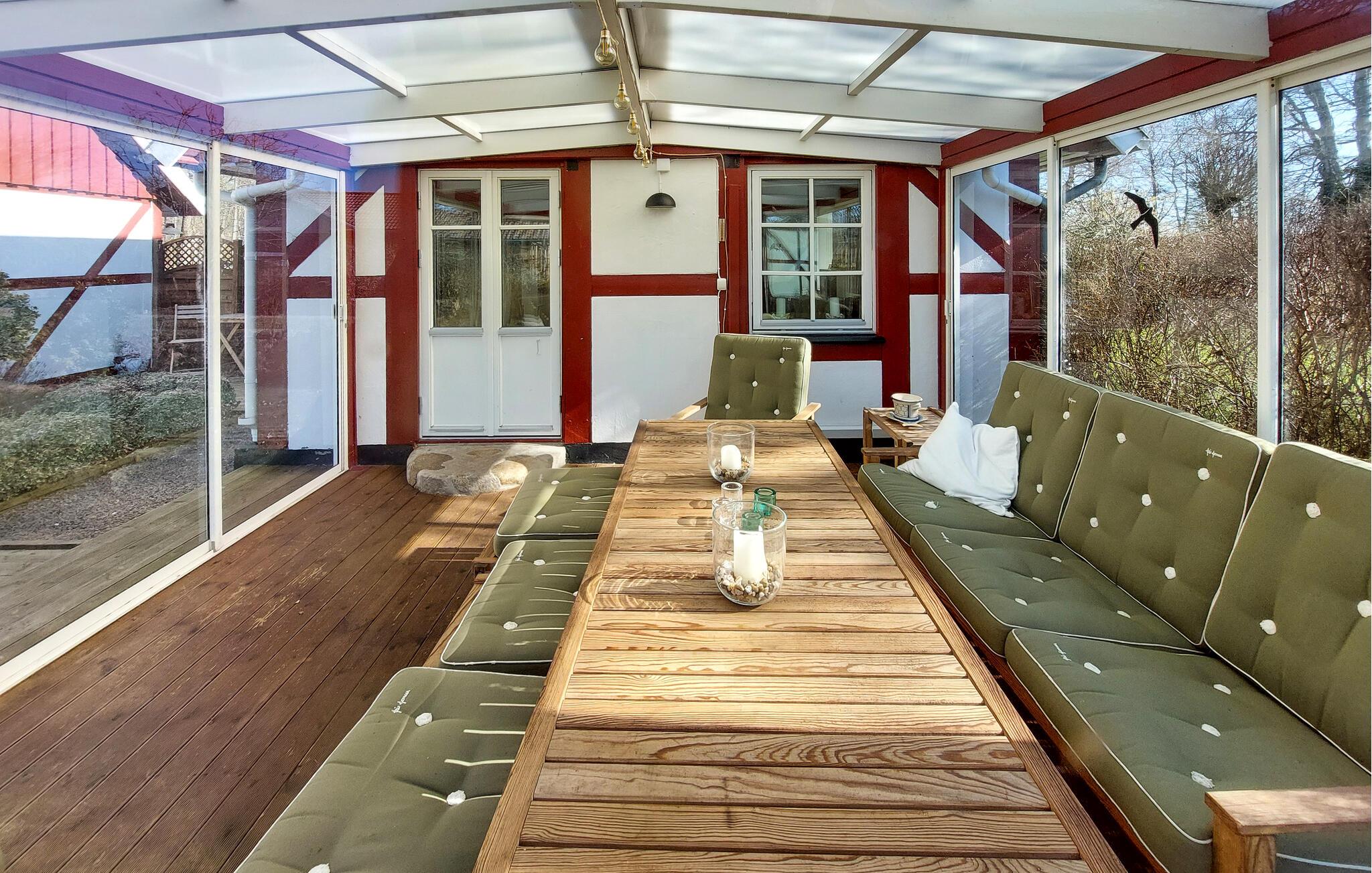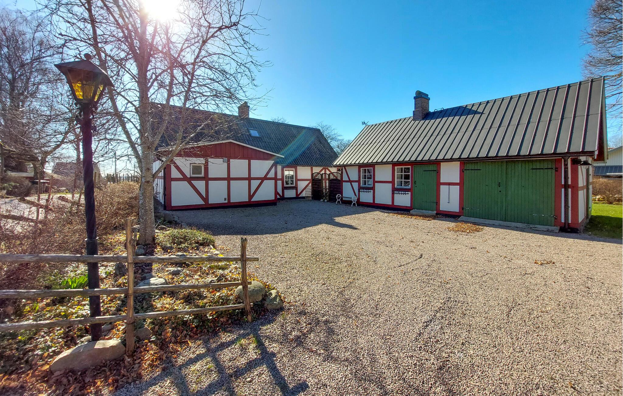 Glæd jer til en afslappende pause i dette traditionelle skånske hus, som er blevet stilfuldt moderniseret. Den rolige beliggenhed tilbyder de optimale rammer for en ferie tæt på naturen. Tilbring hyggelige timer i den indbydende stue med synlige træbjælker, komfortable polstrede møbler og pejs. I det rummelige køkken finder I alt, hvad I behøver for at lave mad sammen. Nyd dagens måltider ved det tilstødende bord eller i den vidunderligt lyse udestue med udsigt over de grønne områder.