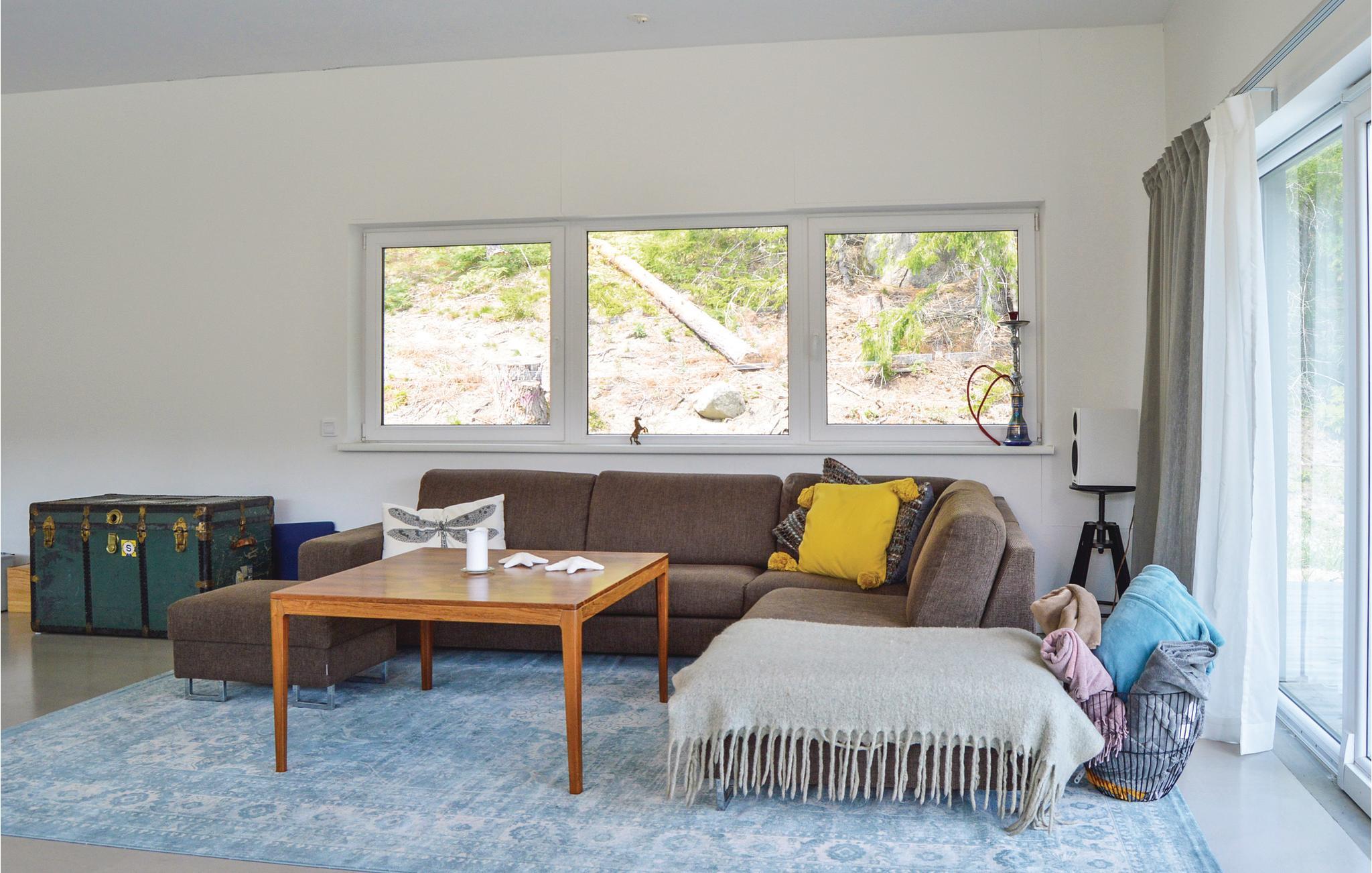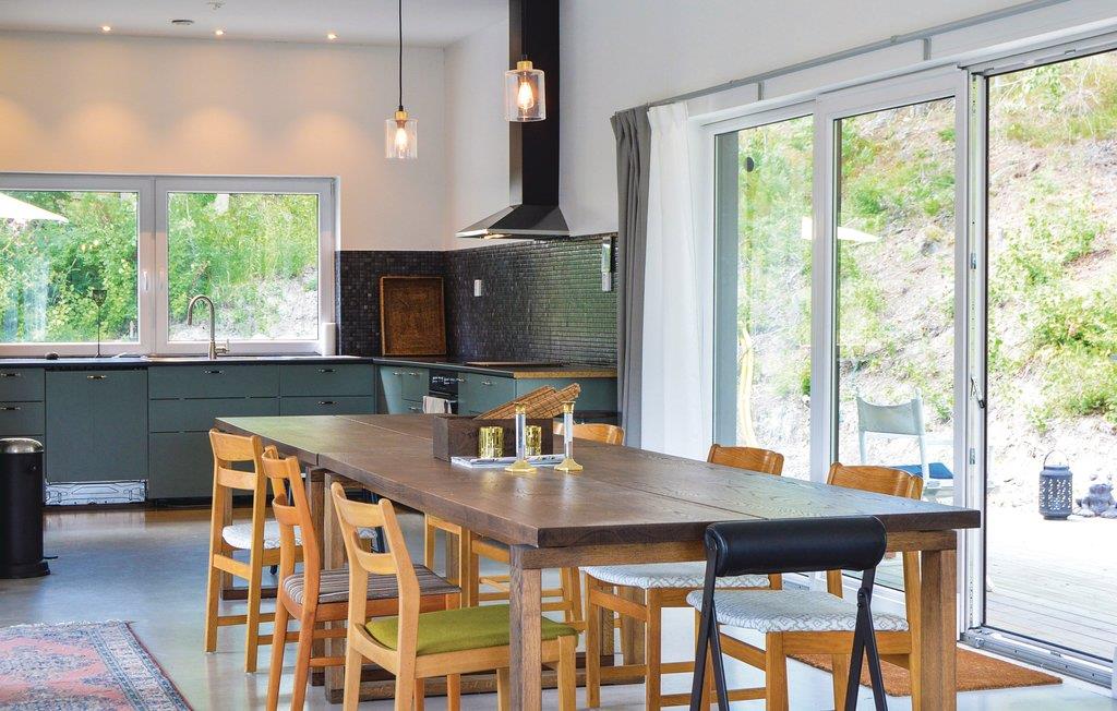 På Muskö i Stockholms sydlige skærgård, ligger dette pragtfulde feriehus, i rolige omgivelser med udsigt over søen. I kan køre til huset i egen bil eller tage bus og har adgang til robåd, kun 100 m fra huset. Mange gode muligheder for at bade i havet. Der er skaterbane på grunden. Huset er i to plan med store glaspartier ud mod træterrassen foran. Gode pladser til solbad, til at grille og stort bord til udendørs middage. Soveværelserne ligger på første sal, badeværelser på begge planer. Nær to restauranter og 650 m til dagligvarebutik. På fastlandet ligger Nynäshamn med Nickstabadet med vandrutsjebane og minigolf. Lad bilen blive hjemme og tag bussen fra Ösmo station. Til Stockholm med seværdigheder som ABBA The Museum, Fotografiska och Kungliga slottet tager det lidt mere end en time med bus og tog.