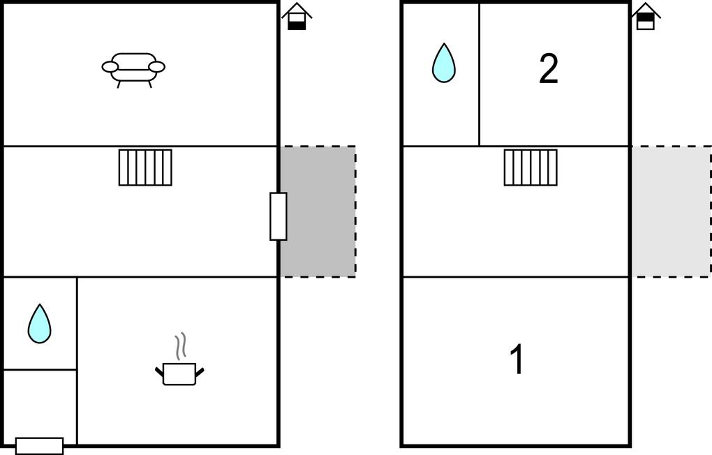 Soveværelse (nr. 1) - 1 Soveplads. (Enkeltseng(e)). 2 Sovepladser. (Dobbeltseng(e)).