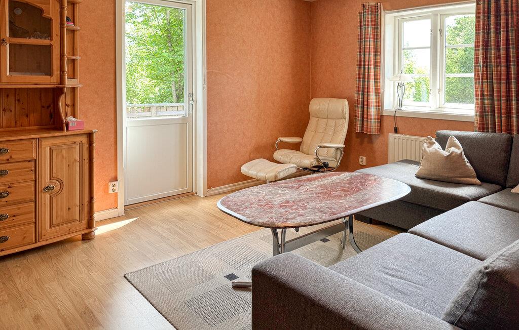 Beliggende direkte ved bredden af den rolige Spexhultasjön, inviterer dette indbydende feriehus jer til at tilbringe afslappende dage væk fra hverdagen. Glæd jer til harmoniske måltider ved det hyggeligt oplyste spisebord, nyd sjove spilleaftener med familien, og læs i den indbydende stue, mens I lytter til den blide knitren fra den norske brændeovn.