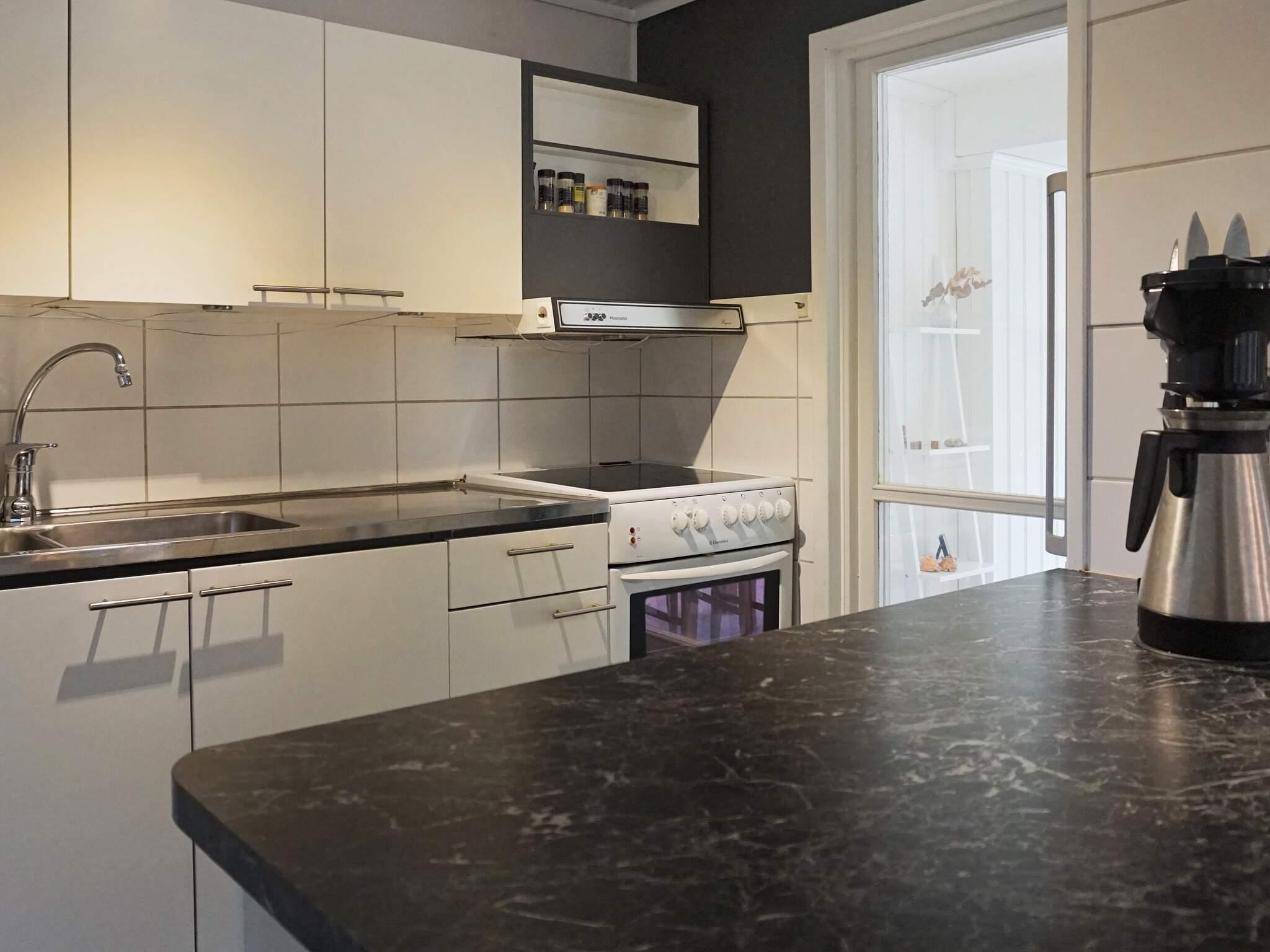 Køkkenafd.: Høj stol, el-komfur, køle-frys, mikroovn, emhætte, kaffemaskine