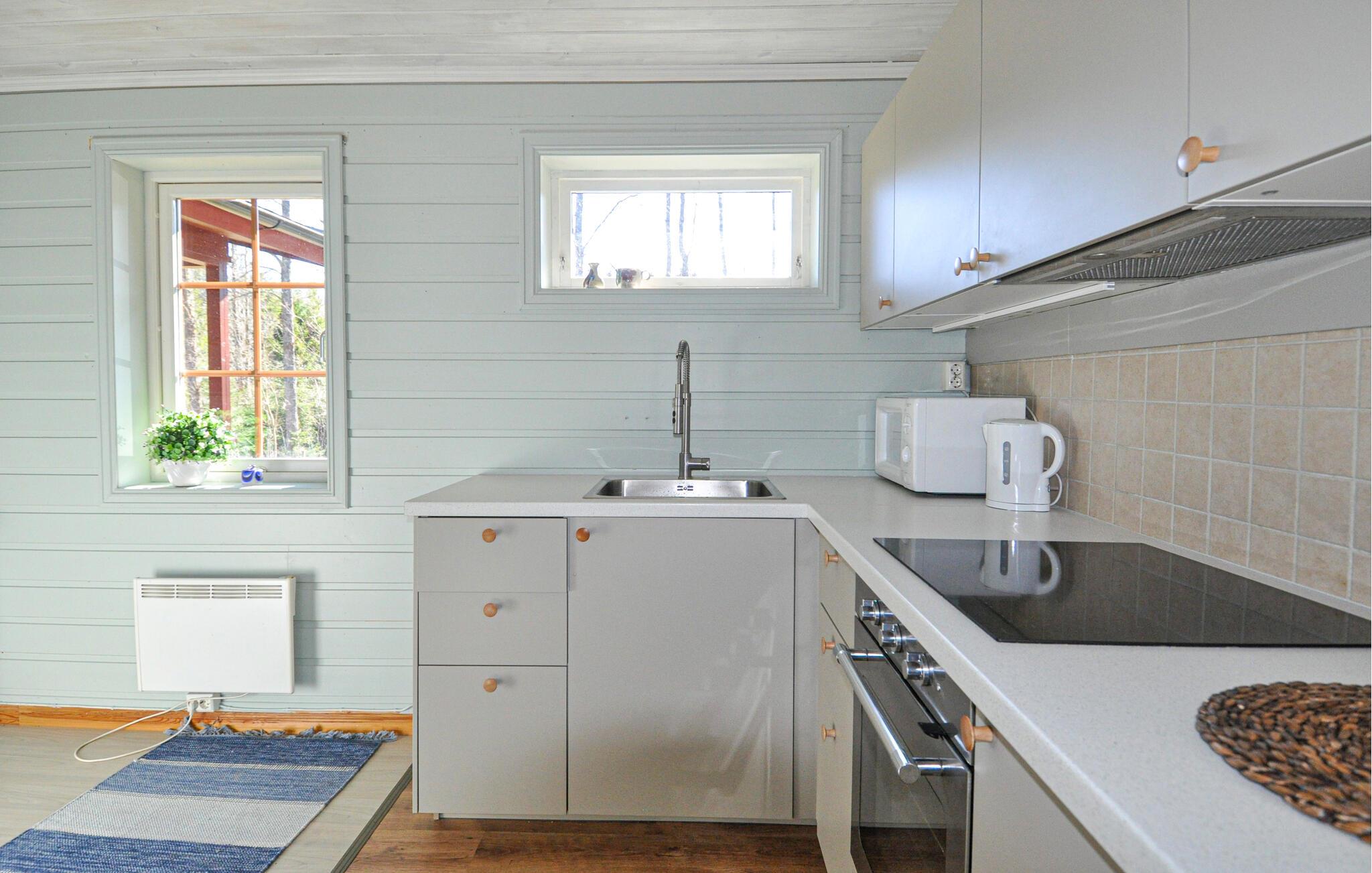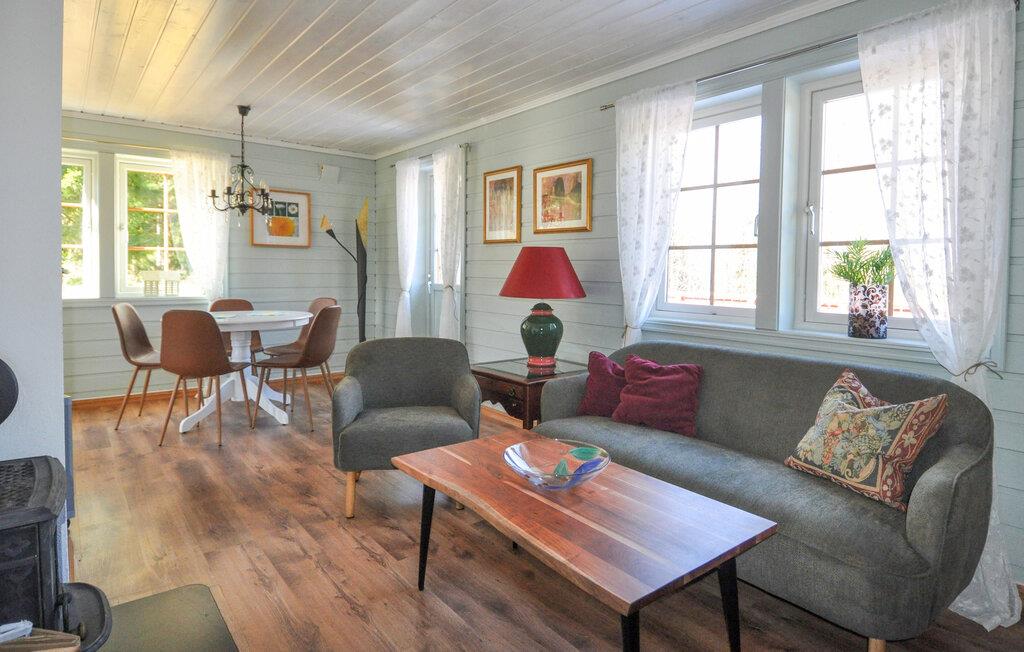 Sæt hverdagen på pause og føl jer hjemme i dette hyggelige feriehus. Tilbered lækre måltider i det moderne køkken og sæt jer ved spisebordet. Efter en lang dag i den friske luft kan I tænde brændeovnen og nyde harmoniske aftener i den hyggelige stue. Slap af med et brætspil eller fordyb jer i en god bog.
