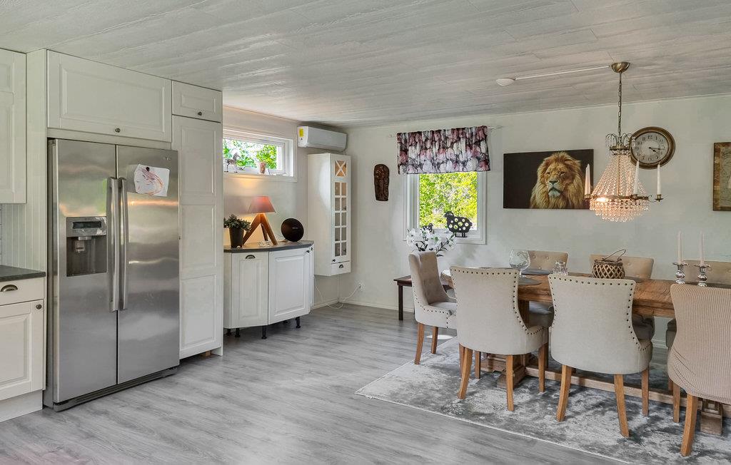 Hold jeres ferie i en smuk beliggenhed tæt på skoven, kun 600 meter fra Vänern. Feriehuset er karakterfuldt med søde detaljer, indbydende faciliteter og en skøn have. Når man træder ind, bemærker man straks det meget store spisekøkken, som lægger op til at give sig god tid til madlavningen på ferien. Her kan I sammensætte nogle lækre retter, før I dækker op til den store middag. Hvis I har brætspillene med, har I en hyggelig aktivitet til aftentimerne. Den komfortable hjørnesofa er et godt sted at læne sig tilbage efter en lang dag på farten. Nyd ikke at skulle tidligt op og tilbring lange grillaftener på terrassen.