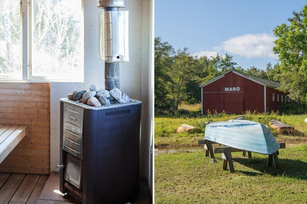 I gæstehuset findes endnu en dobbeltseng samt to enkeltsenge. Gæstehusets veranda byder på en vidunderlig havudsigt. Måltider kan tilberedes i køkkenet, på den store grill eller i det udendørs køkken. Efter aftale kan et robåd stilles til rådighed, hvis du har tilstrækkelig kendskab til skærgården.