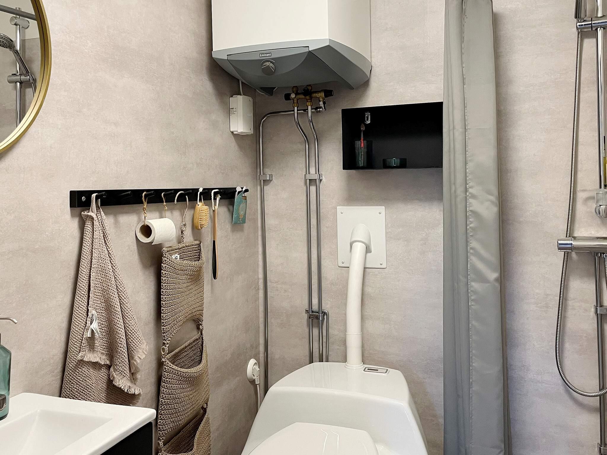 Bad/wc: Biologisk kloset, håndvask, bruser