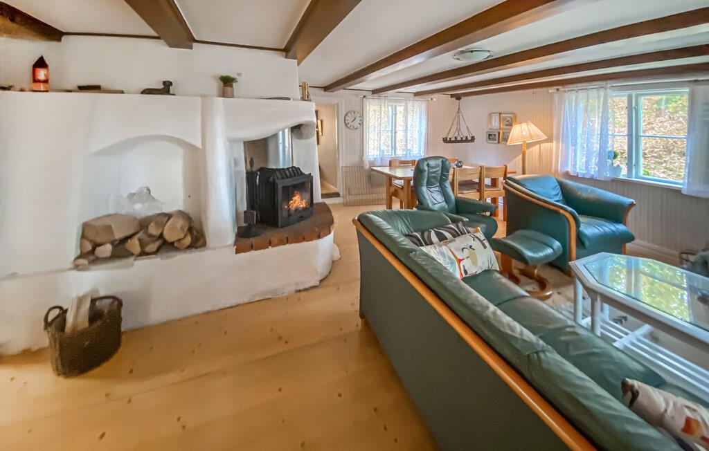 Omgivet af duftende skove og kun få skridt fra søbredden byder dette kærligt restaurerede træhus jer velkommen med en lys og indbydende atmosfære. Tilbered lækre måltider, find sammen omkring det indbydende spisebord, og lad den norske brændeovn bidrage til den hyggelige atmosfære. Efter en lang dag i naturen kan I slappe af i stuen med et brætspil eller en god bog.