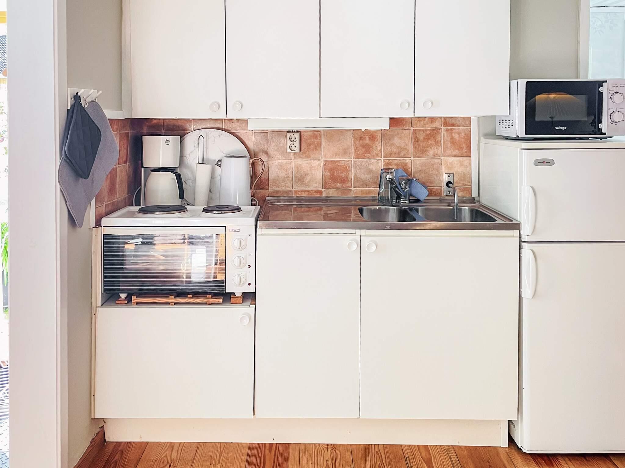Garderober och hatthylla innanför entrédörren för ett praktiskt ändamål. Huset består av ett fräscht och ljust rum som innehåller köks del, matbord och bäddsoffa och tillgång till TV. Väl tilltaget badrum med dusch beläget innanför rummet.