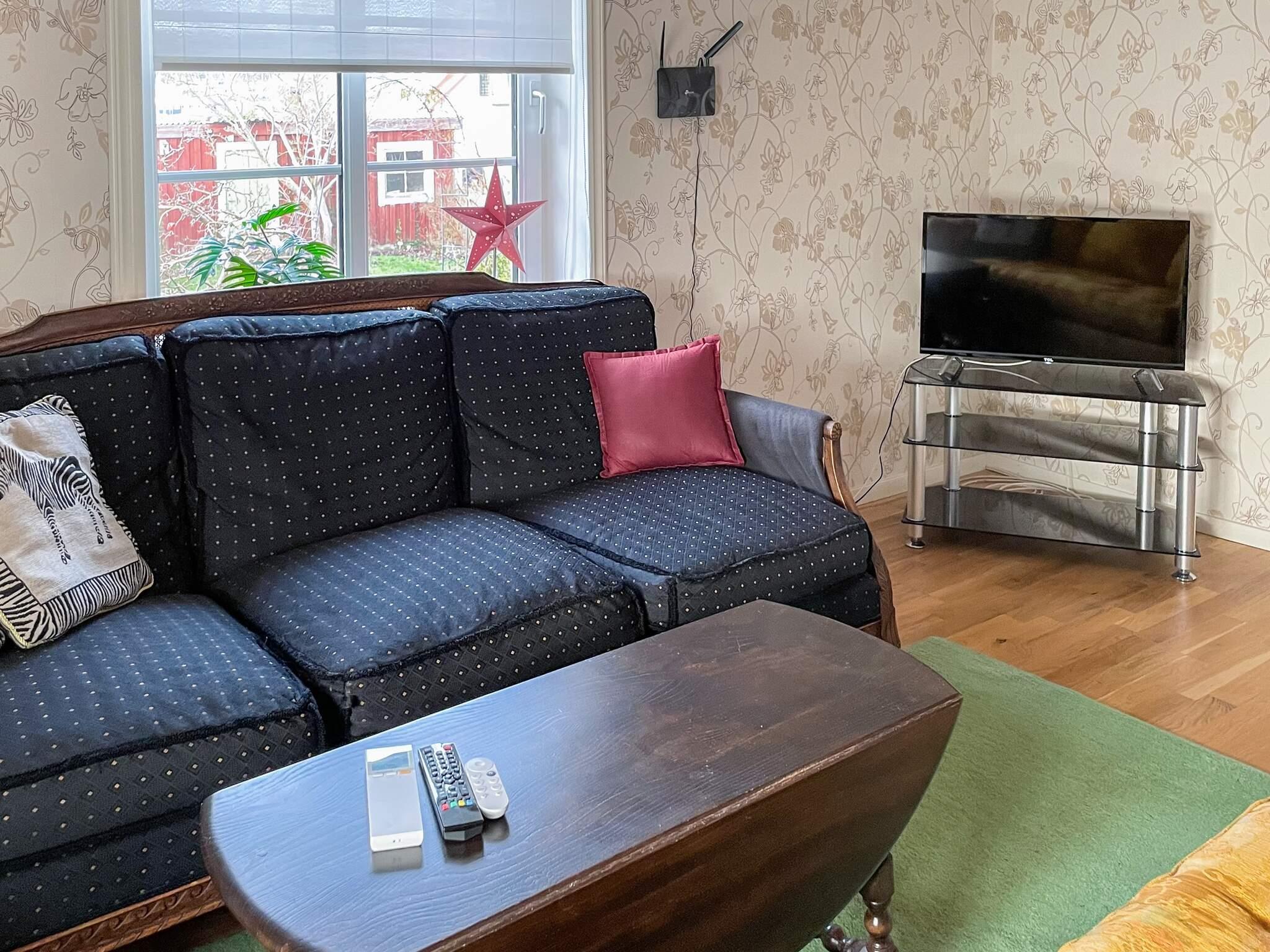 Huset med sina två plan har stora rymliga rum i hela huset. I hallen med öppen planlösning ligger det välutrustade köket rakt fram med stora möjligheter till självhushåll. I angränsande rum finns matbord och stolar för måltider och gemensamma stunder med spel och pussel. Rummet andra sidan om köket har soffgrupp för mysiga stunder framför TV med Chromecast. Även nyrenoverad toalett med dusch på nedre plan. På övervåningen med trappgrind för barnsäkerheten finns alla tre sovrummen. Två sovrum i var ände av övervåningen med dubbelsängar, varav det ena med riktiga sängar och det andra med höga luftmadrasser som har extra bäddmadrass ovanpå. I sovrummet mitt mellan de andra två, finns en enkelsäng med underbar utsikt över den lummiga trädgården. Badrummet uppe med WC, Tvättställ, badkar/ dusch och tvättmaskin.