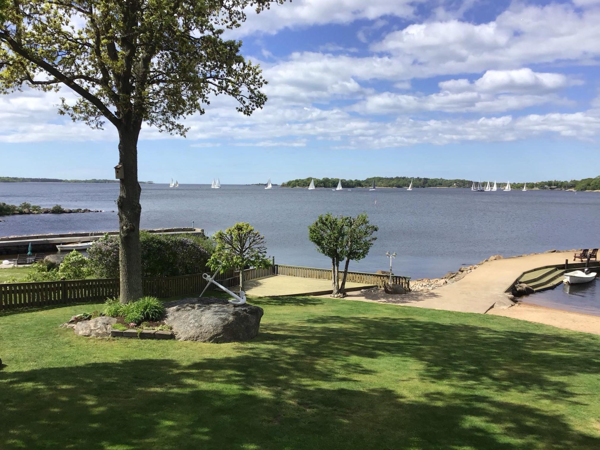 Huset ligger ca. 70 meter fra havet, men selve grunden går hele vejen ned til havet, så her kan I holde ferie på en strandgrund med smuk udsigt over Ronneby skærgård og Østersøen. Feriehuset ligger på en del af ejerens grund, men grunden er opdelt, så I har jeres egen del.