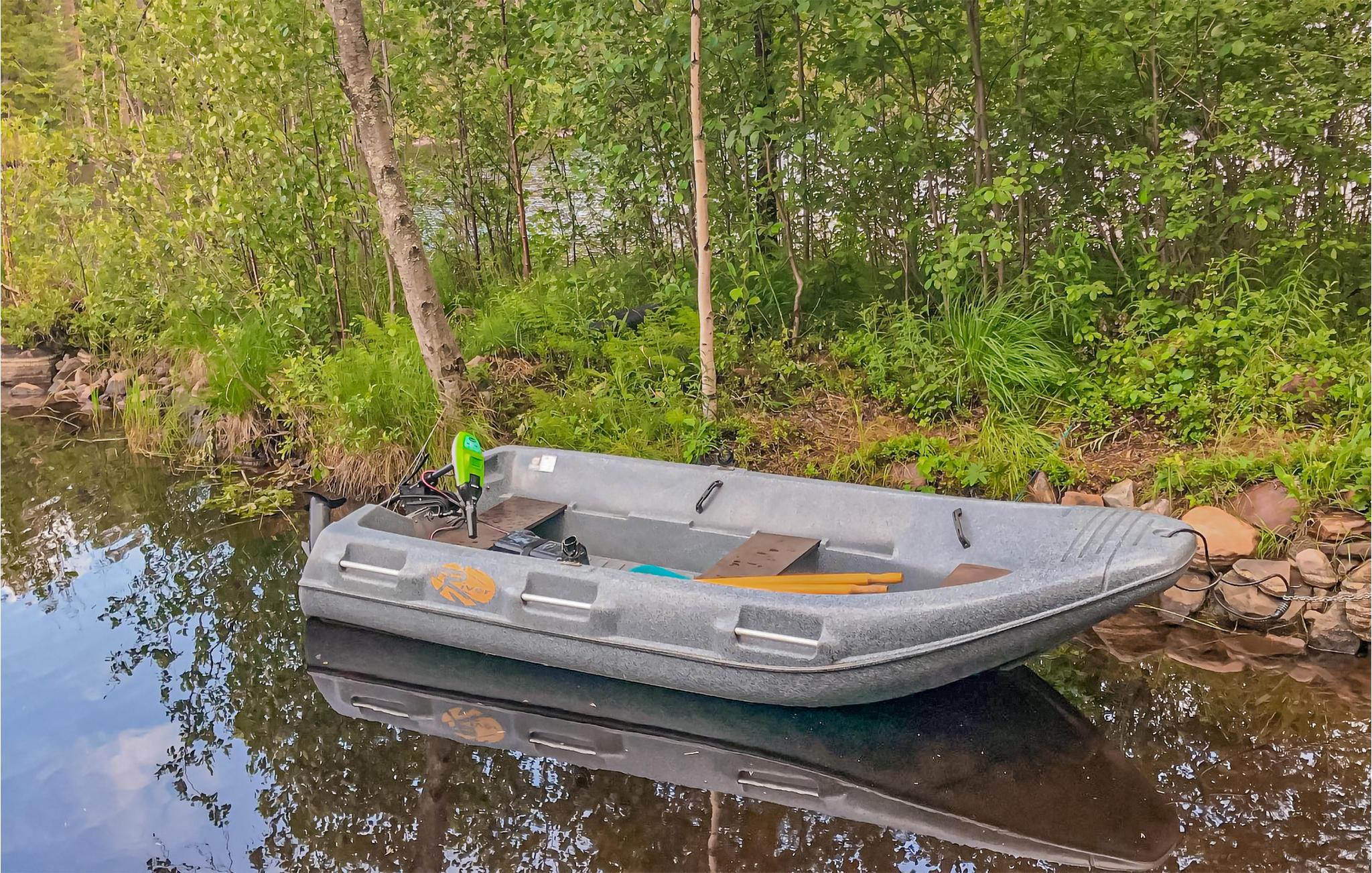 Udenfor kan du tilbringe afslappende timer på den åbne terrasse med havemøbler og grill. En båd er inkluderet i boligen, så du kan udforske området fra vandet. Området byder også på gode fiskemuligheder.