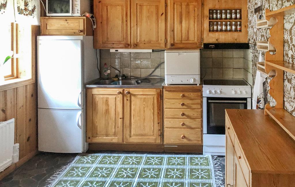 Inde i huset finder du en hyggelig atmosfære med masser af træ. Huset har et soveværelse med en dobbeltseng og et med en køjeseng. Stuen med spiseplads inviterer dig til at tilbringe hyggelige timer med familie eller venner. Der er også et badeværelse med toilet, brusebad og vaskemaskine.