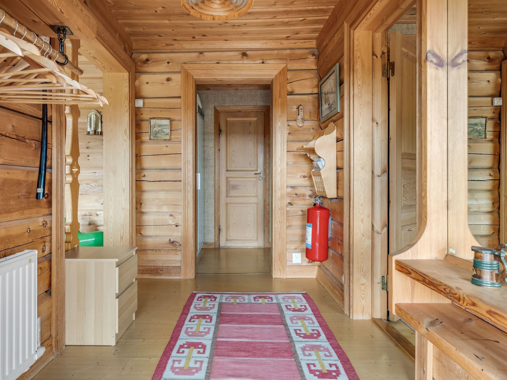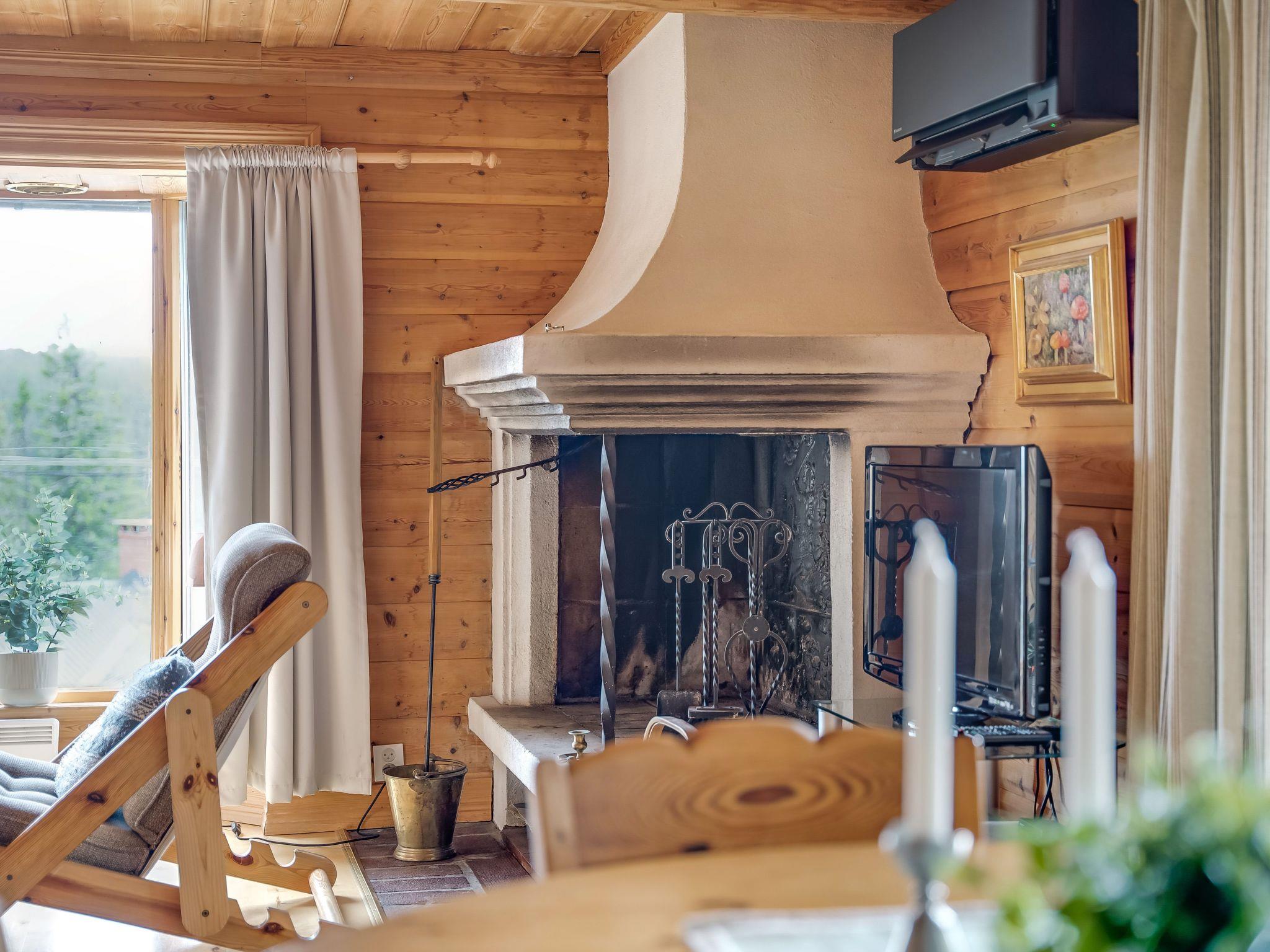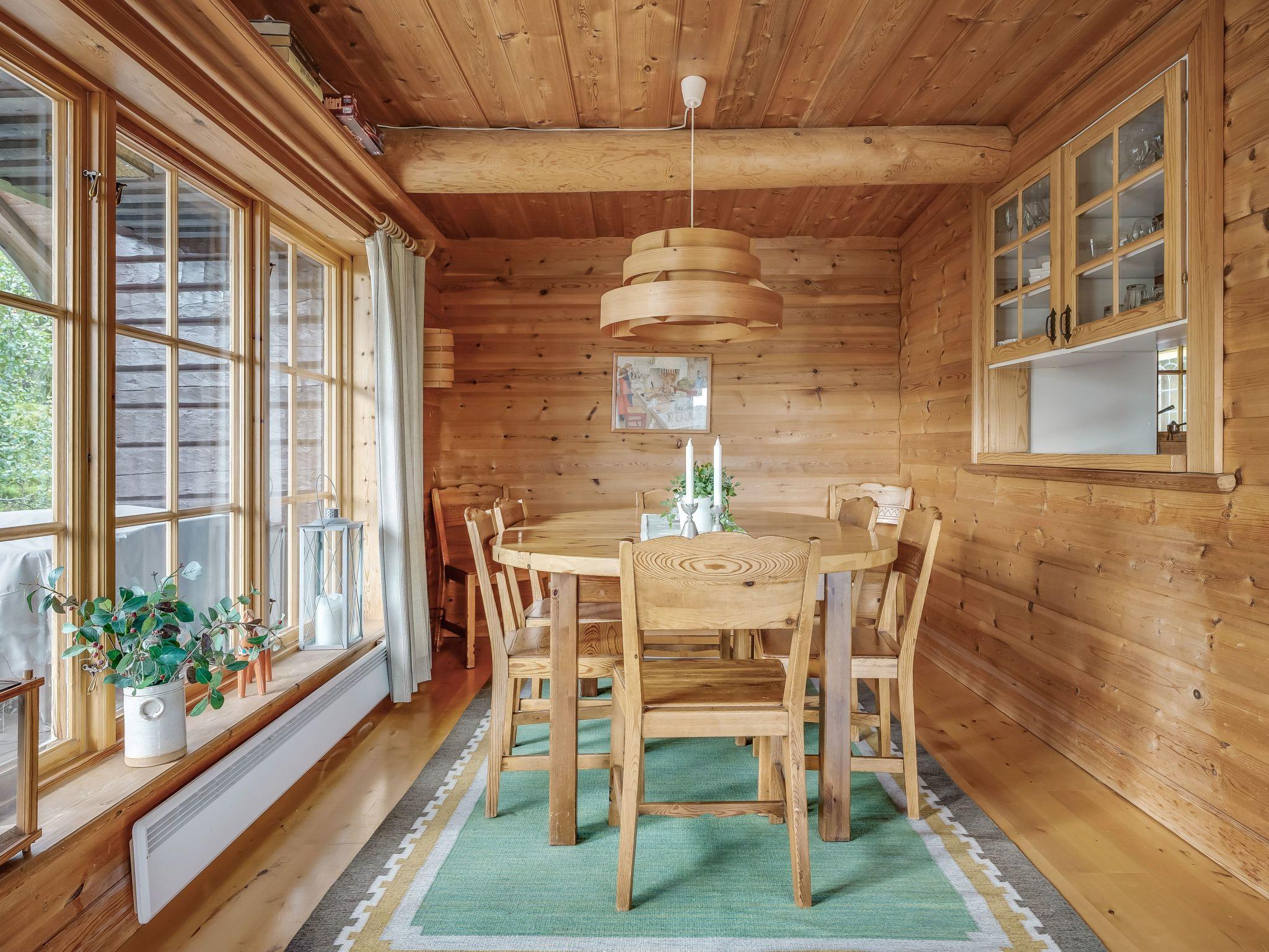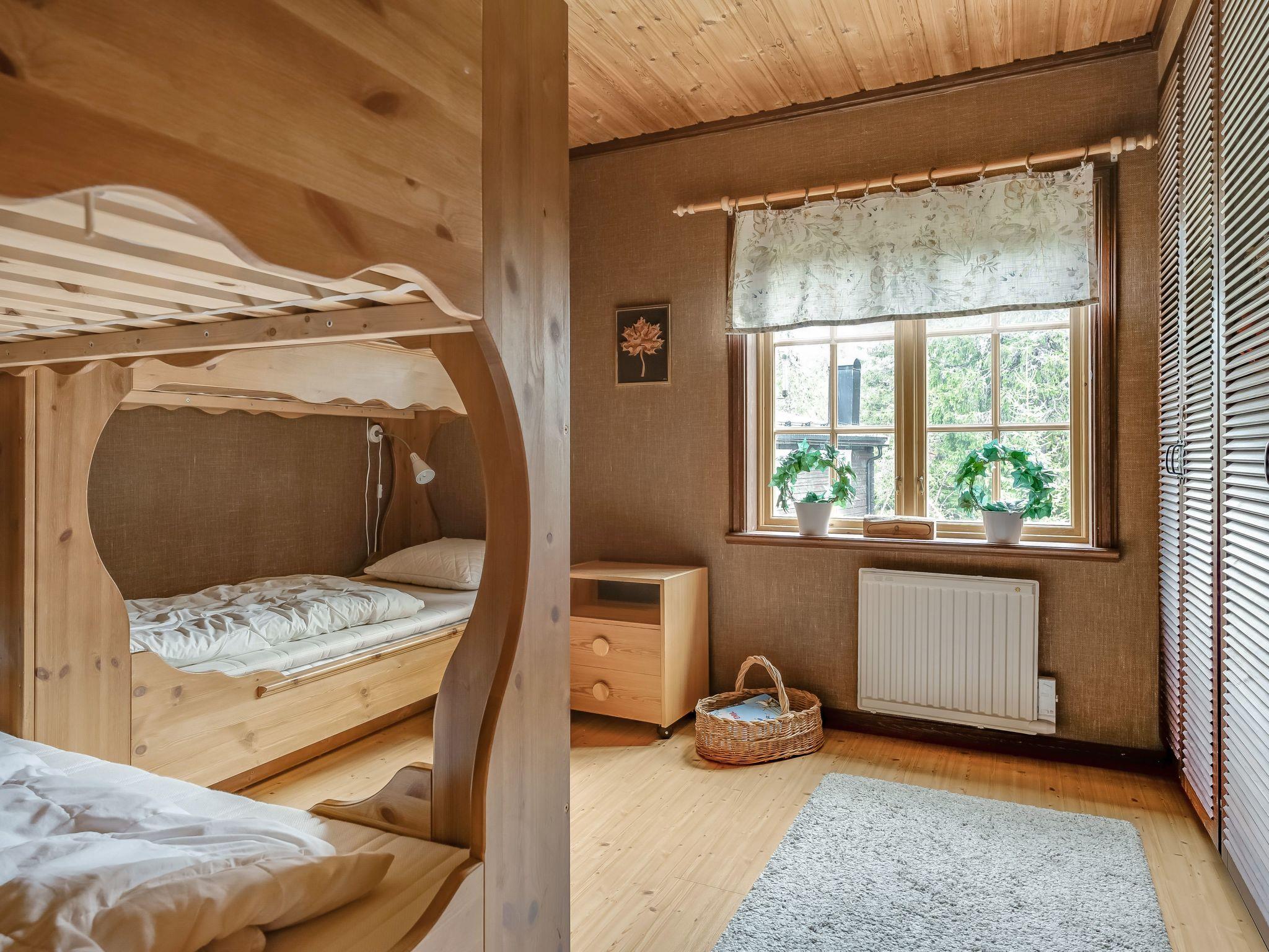 "Korpstigen Älgen", 3-room house 75 m2. Wooden furniture furnishings: living/dining room with open-hearth fireplace, dining table, TV and CD-player. Exit to the veranda. 1 room with 1 double bed. 1 room with 2 x 2 bunk beds. Open kitchen (oven, dishwasher, 4 ceramic glass hob hotplates, microwave, freezer, electric coffee machine). Shower/WC, Sauna. Electric heating. Wooden floors. Terrace furniture, barbecue (portable). Panoramic view. Facilities: washing machine, iron, children's high chair, baby cot. Please note: non-smoking house. Smoke alarm, fire extinguisher. Freezer approx. 80 l.