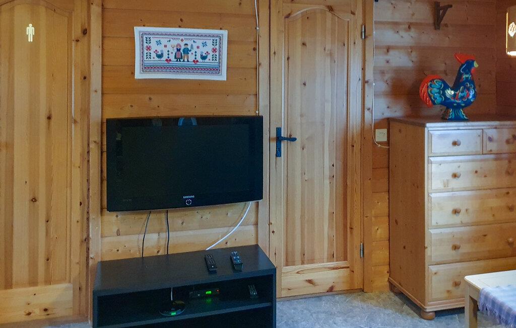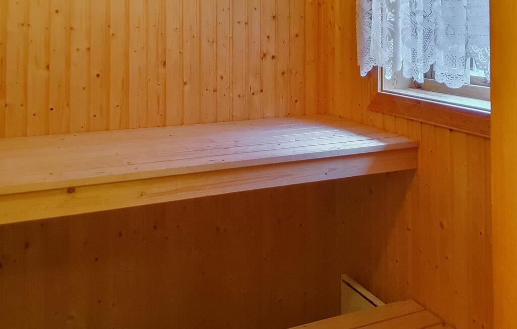 Denne charmerende hytte tilbyder det perfekte tilflugtssted for en afslappende ferie i naturen. Med sine varme, hyggelige møbler og en sauna inviterer den jer til at slappe af. Efter en dag fuld af aktiviteter kan I slappe af her. Takket være den rolige beliggenhed og nærheden til vandre- og cykelstier tilbyder den ideelle betingelser for udendørs eventyr eller afslappende timer på terrassen.