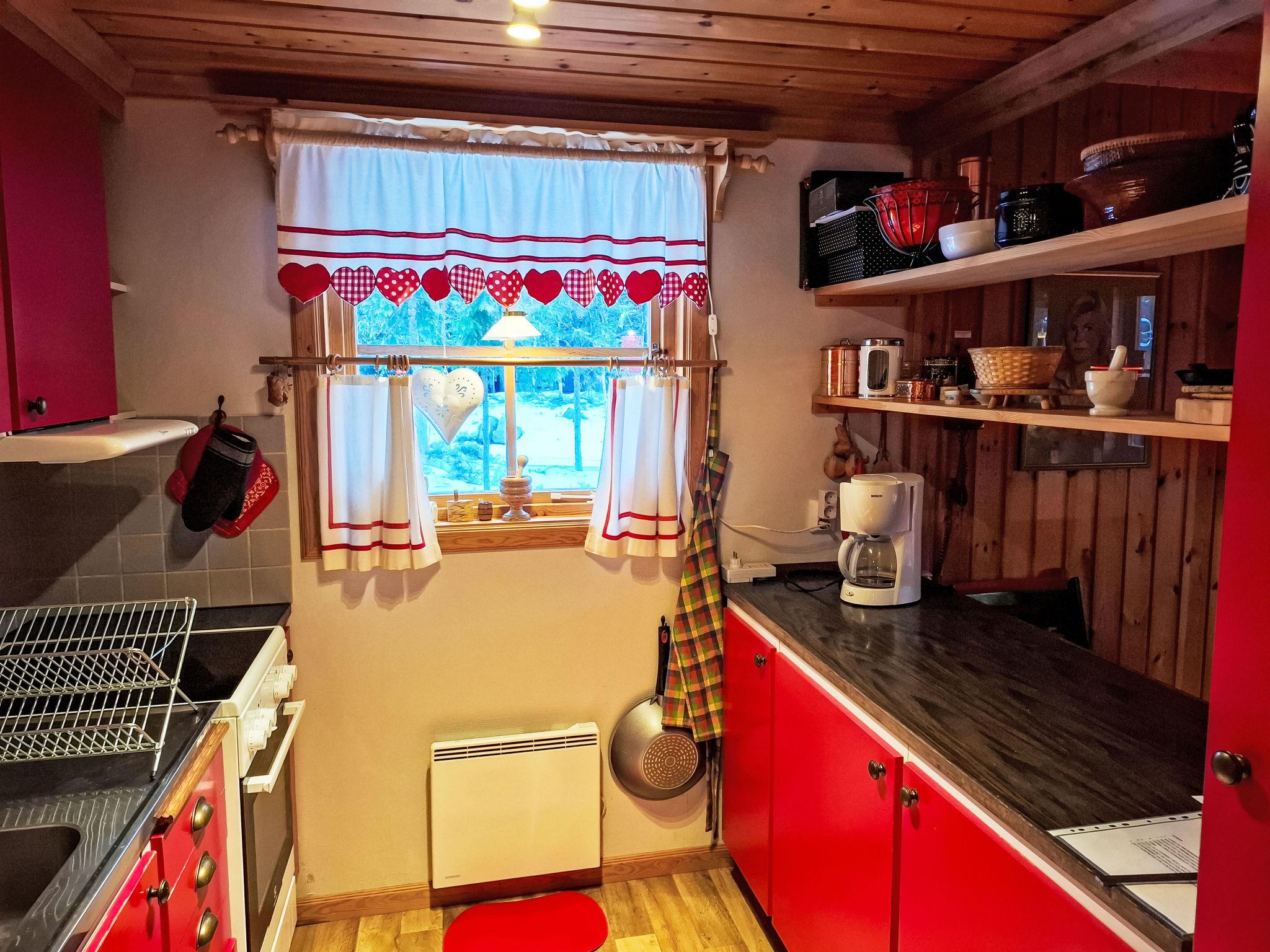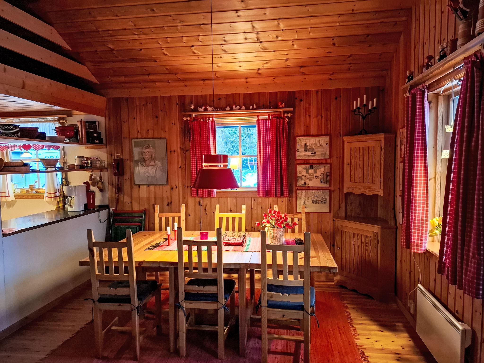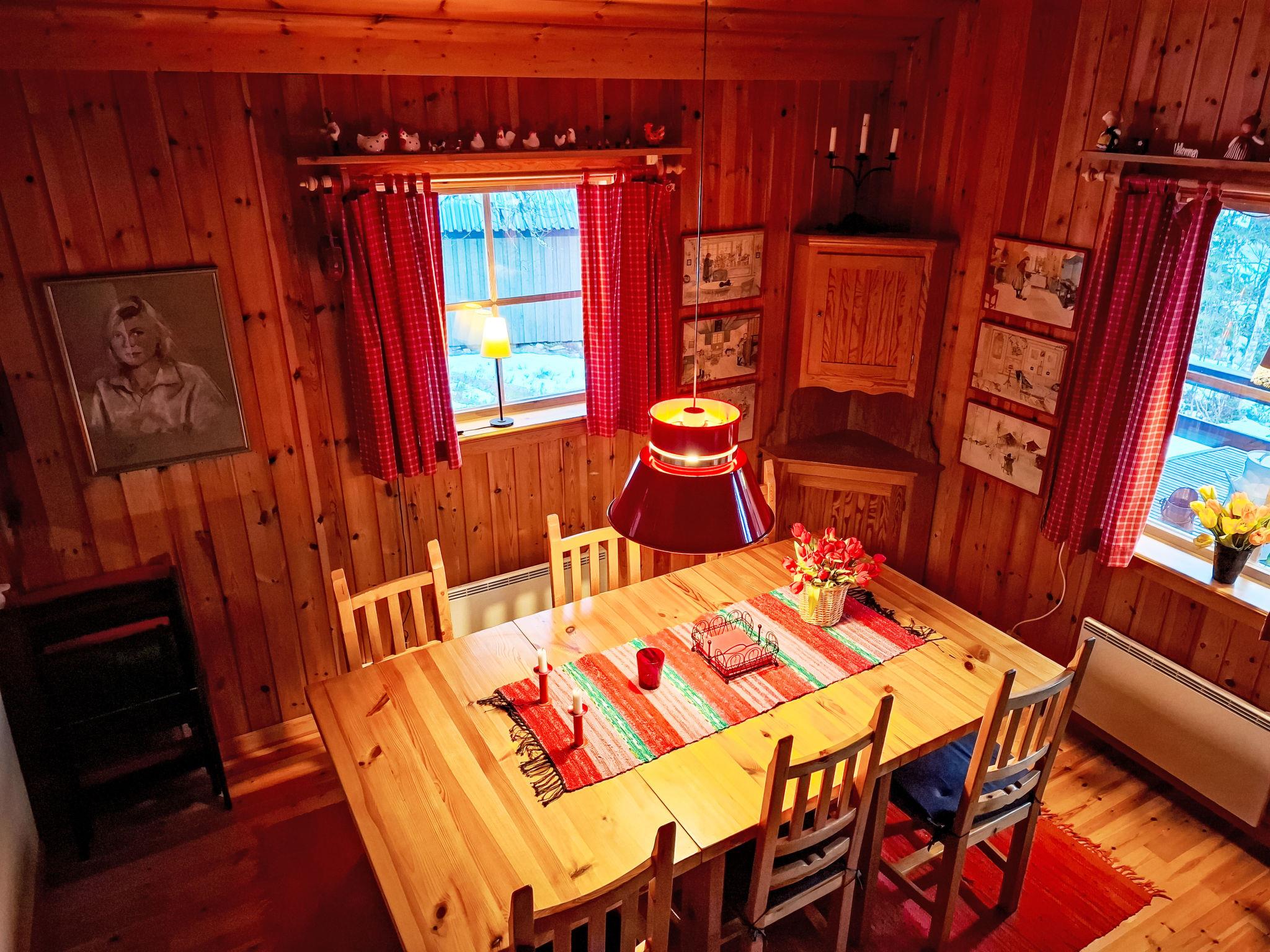 "Gördalen", 4-room house 55 m2 on 2 levels. Spacious, partly with sloping ceilings, partly renovated in 2000, comfortable and cosy furnishings: living/dining room 25 m2 with open-hearth fireplace and dining table. Exit to the garden, to the terrace. 1 room 10 m2 with 1 x 2 bunk beds (80 cm, length 200 cm). Kitchen (4 hot plates, oven, microwave, freezer, electric coffee machine). Shower, simple dry toilet. Heating, air-conditioning, boiler (80 litres). Upper floor: 1 open room 30 m2, with sloping ceilings with 1 double bed (180 cm, length 200 cm). Wooden floors. Comfortable furnishings in the country house style. Terrace 25 m2. Terrace furniture, barbecue (portable). Beautiful view of the mountains, the valley, the countryside and the forest. Facilities: hair dryer. Please note: non-smoking house. Maximum 2 pets/ dogs allowed. Smoke alarm, fire extinguisher.