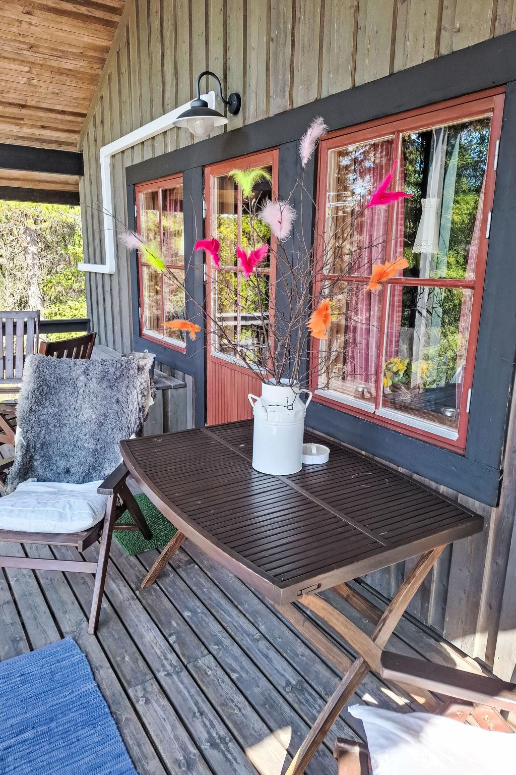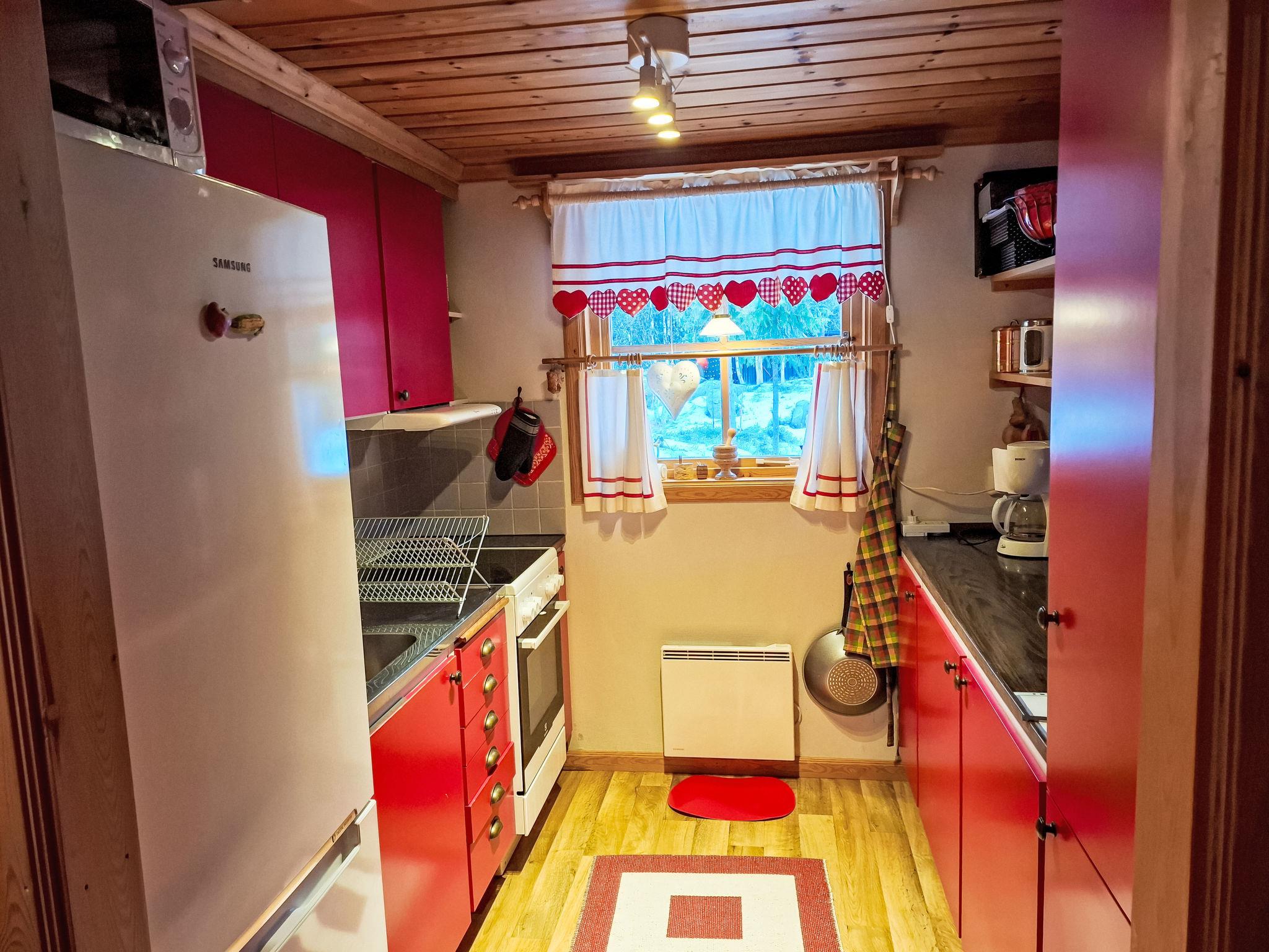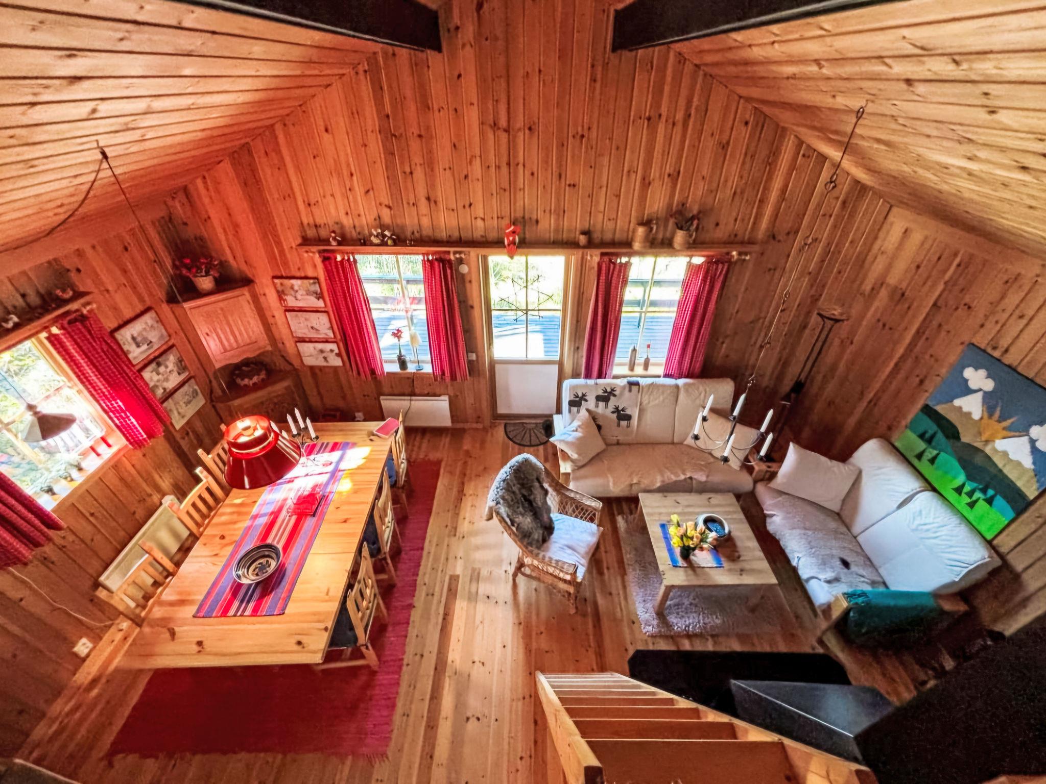 "Gördalen", 4-room house 55 m2 on 2 levels. Spacious, partly with sloping ceilings, partly renovated in 2000, comfortable and cosy furnishings: living/dining room 25 m2 with open-hearth fireplace and dining table. Exit to the garden, to the terrace. 1 room 10 m2 with 1 x 2 bunk beds (80 cm, length 200 cm). Kitchen (4 hot plates, oven, microwave, freezer, electric coffee machine). Shower, simple dry toilet. Heating, air-conditioning, boiler (80 litres). Upper floor: 1 open room 30 m2, with sloping ceilings with 1 double bed (180 cm, length 200 cm). Wooden floors. Comfortable furnishings in the country house style. Terrace 25 m2. Terrace furniture, barbecue (portable). Beautiful view of the mountains, the valley, the countryside and the forest. Facilities: hair dryer. Please note: non-smoking house. Maximum 2 pets/ dogs allowed. Smoke alarm, fire extinguisher.