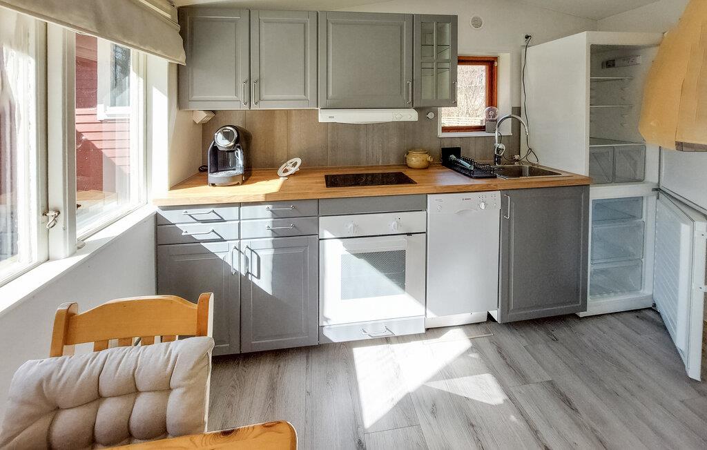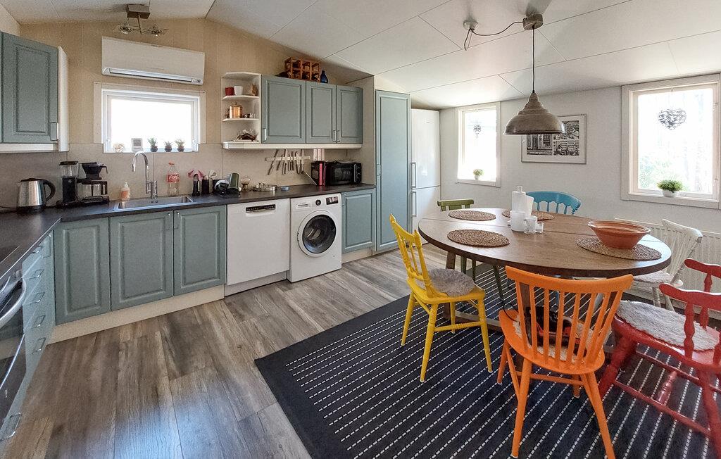 Velkommen til dette lyse og rummelige feriehus, hvor hyggelige dage med familien venter jer. Fremtryl lækre retter i det lyse køkken og sæt jer ved det indbydende spisebord, som også er perfekt til hyggelige spilleaftener. Efter en lang dag kan I slappe af i den behagelige sofa, streame en film eller lytte til knitren fra pejsen, mens I læser en god bog.