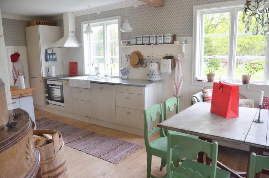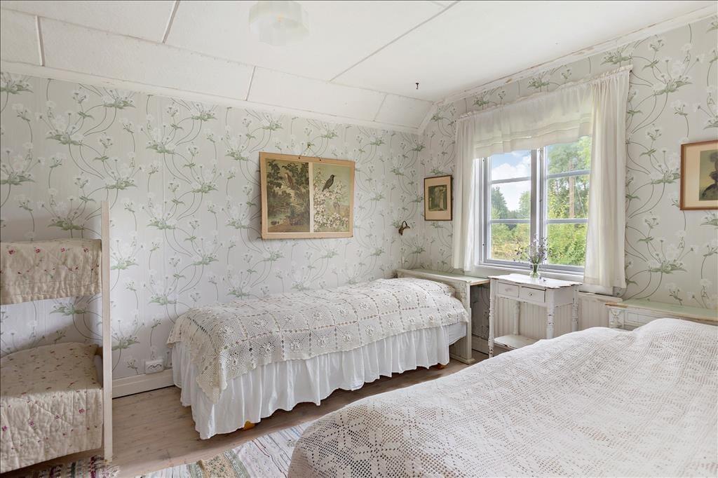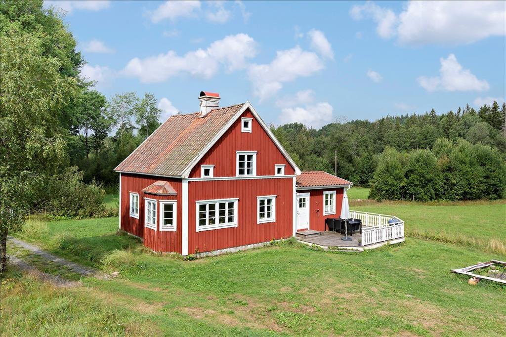 Ca. 130 m² stort feriehus med plads til 6 voksne og 2 børn. Huset er totalrenoveret og isoleret og har en stue med køkken med direkte adgang til stuen med brændeovn, tv og dvd, entré med trappe til 1. sal, lille gang og spisekammer med køkkenmaskine. Huset er indrettet med smukke, antikke svenske møbler, der skaber en helt særlig, hyggelig atmosfære. Køkkenet er helt nyt og har opvaskemaskine, køleskab med fryser, induktionskomfur, emhætte og et stort spisebord. Huset har desuden et helt nyt badeværelse med toilet, badekar og bruser. Der er i alt tre soveværelser, hvoraf det ene har en dobbeltseng, et meget lille værelse med to enkeltsenge (boxmadrasser) samt et soveværelse med to enkeltsenge og en køjeseng til børn. Vaskemaskine og tørretumbler til rådighed. Huset opvarmes i stueetagen med varmekonverter og en effektiv brændeovn. På første sal er der elvarme. Til huset hører en stor ildsted samt en terrasse, der løber helt rundt om huset, med to store spisepladser på begge sider af huset, så du kan nyde solen hele dagen. Parasol, liggestole og havemøbler er til rådighed. Gæsterne har desuden adgang til hurtig gratis WiFi.