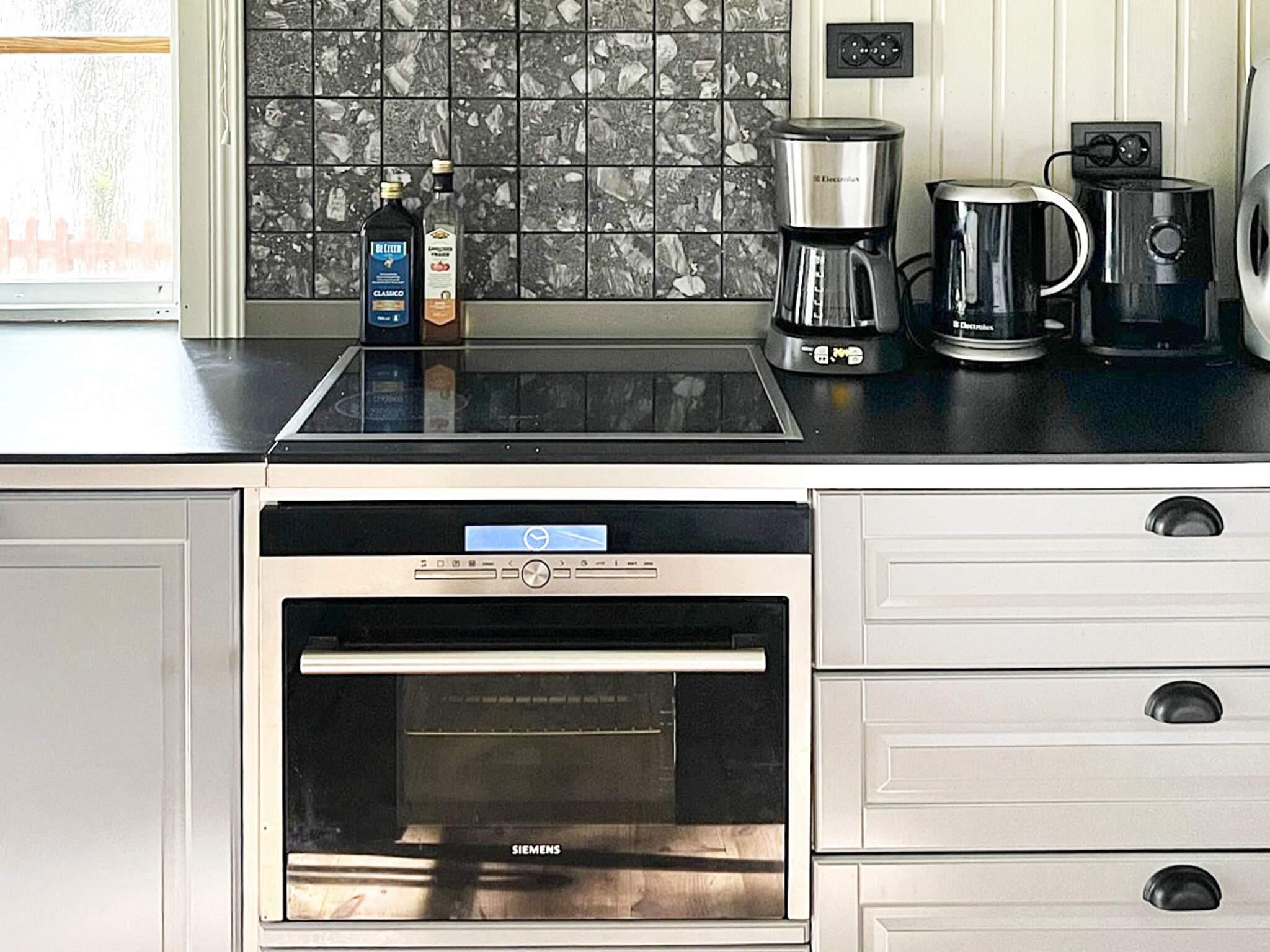 Køkken: ovn, køle-frys, mikroovn, induktionskomfur, kaffemaskine, opvaskemask., vand fra brønd