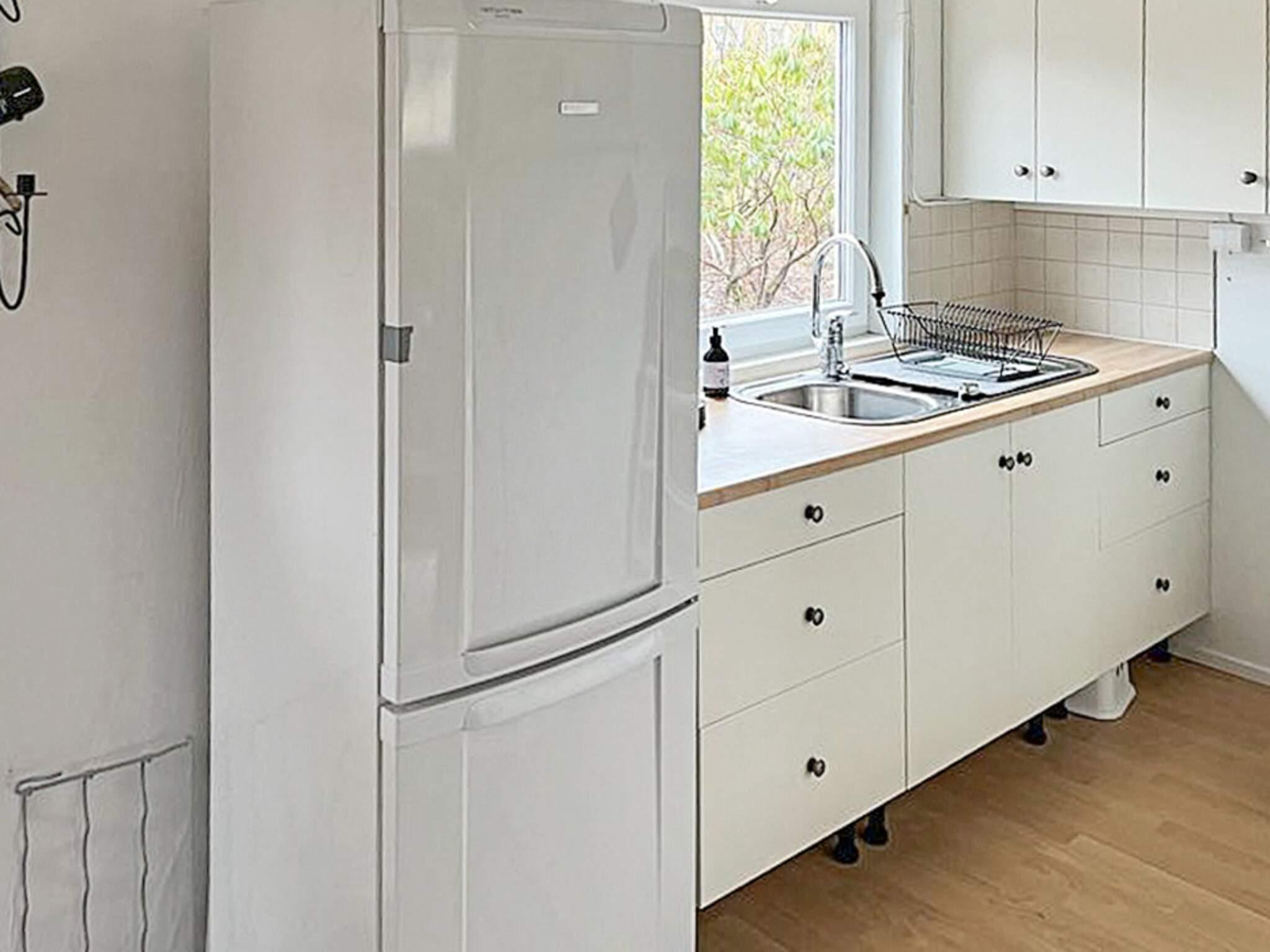 Køkken: El-komfur, ovn, køle-frys, mikroovn, kaffemaskine, vand fra brønd
