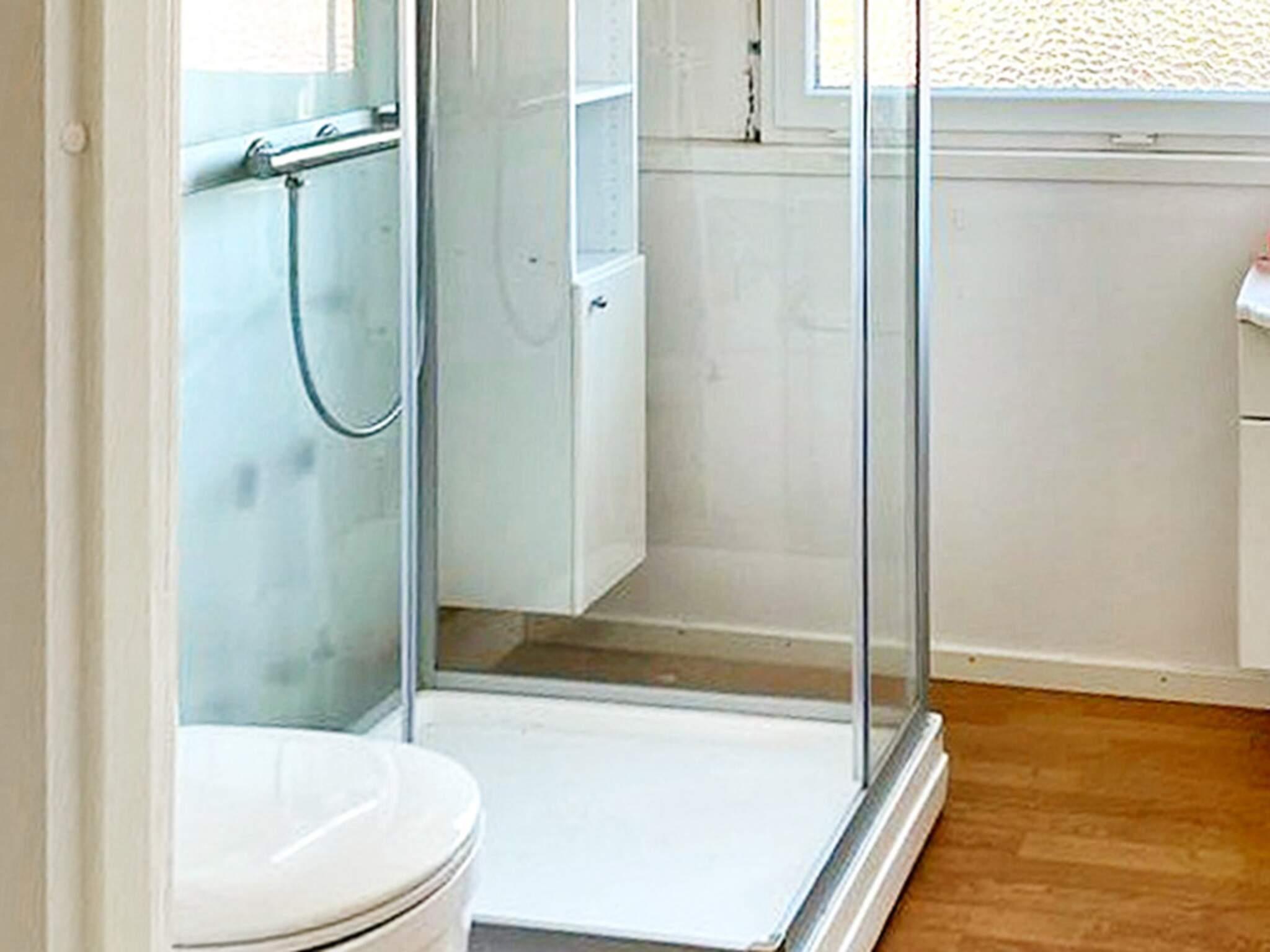 Det finns dusch och en eltoalett i badrummet.