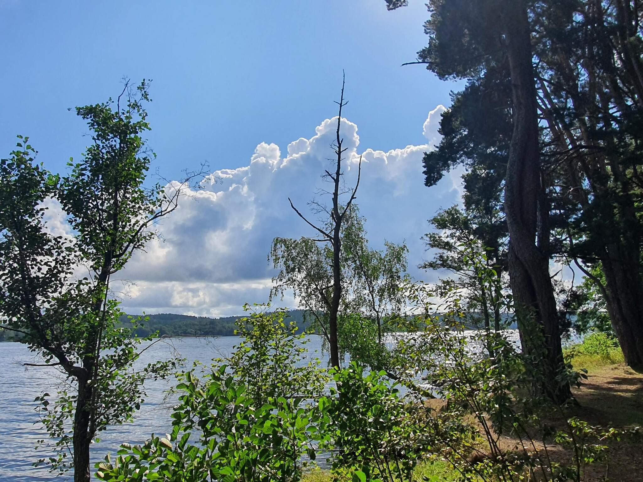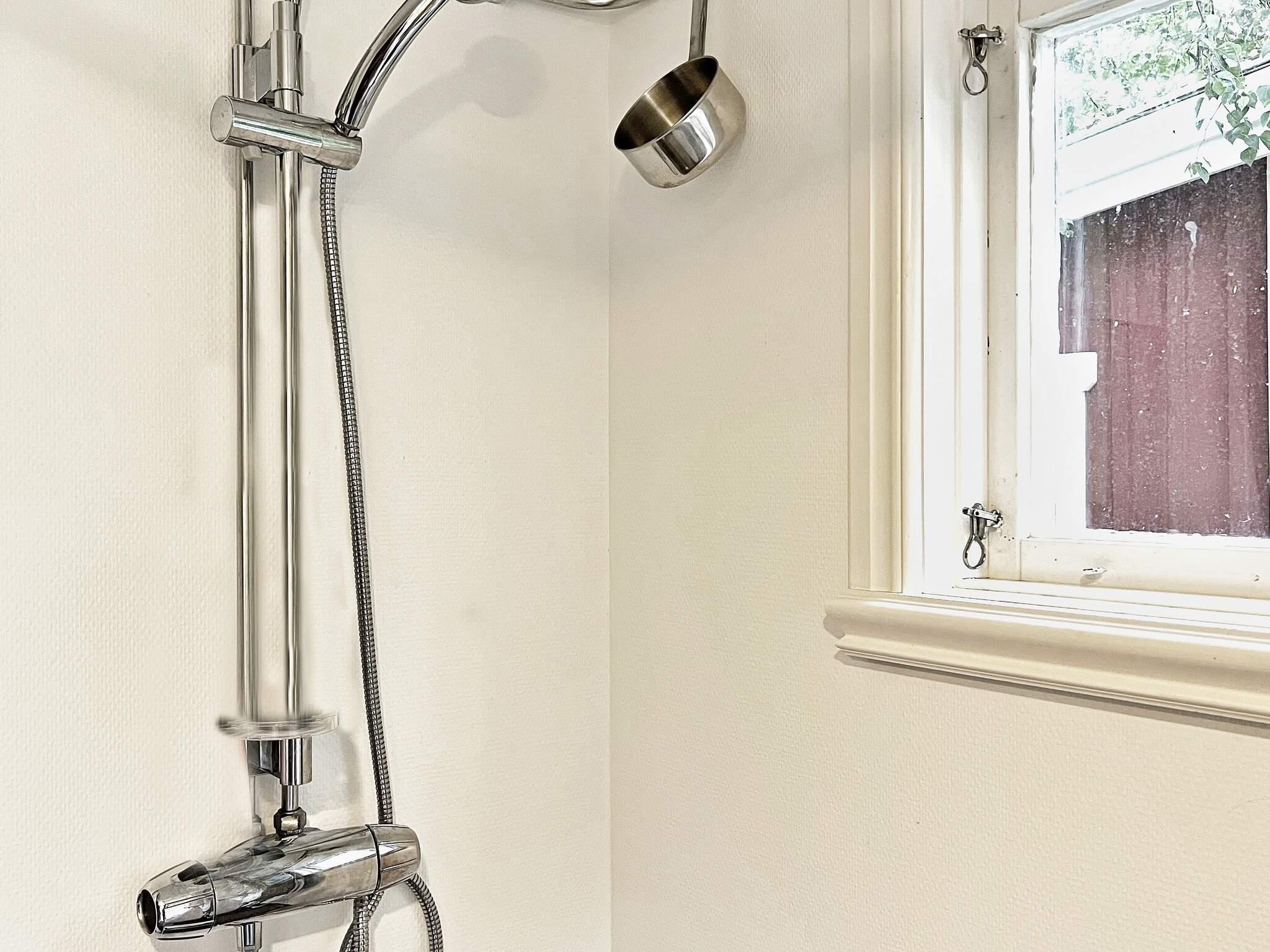 På tomten finns ett litet gästhus med två enkelsängar, här finns även mikro, TV med dvdspelare och vattenkokare. Det finns även ett minikylskåp. I ett separat hus finns en rymlig vedeldad bastu med dusch. En separett finns i ett mysigt toaletthus intill. Alla husen ligger nära varandra och ligger helt insynsskyddat på grund av stora träd och häckar. Parkering finns intill häcken. Vill ni ta ett morgondopp eller kvällsdopp i den närliggande sjön tar det bara ett par minuter att gå. Där finns både brygga och en liten sandstrand. Ett underbart mysigt hus!