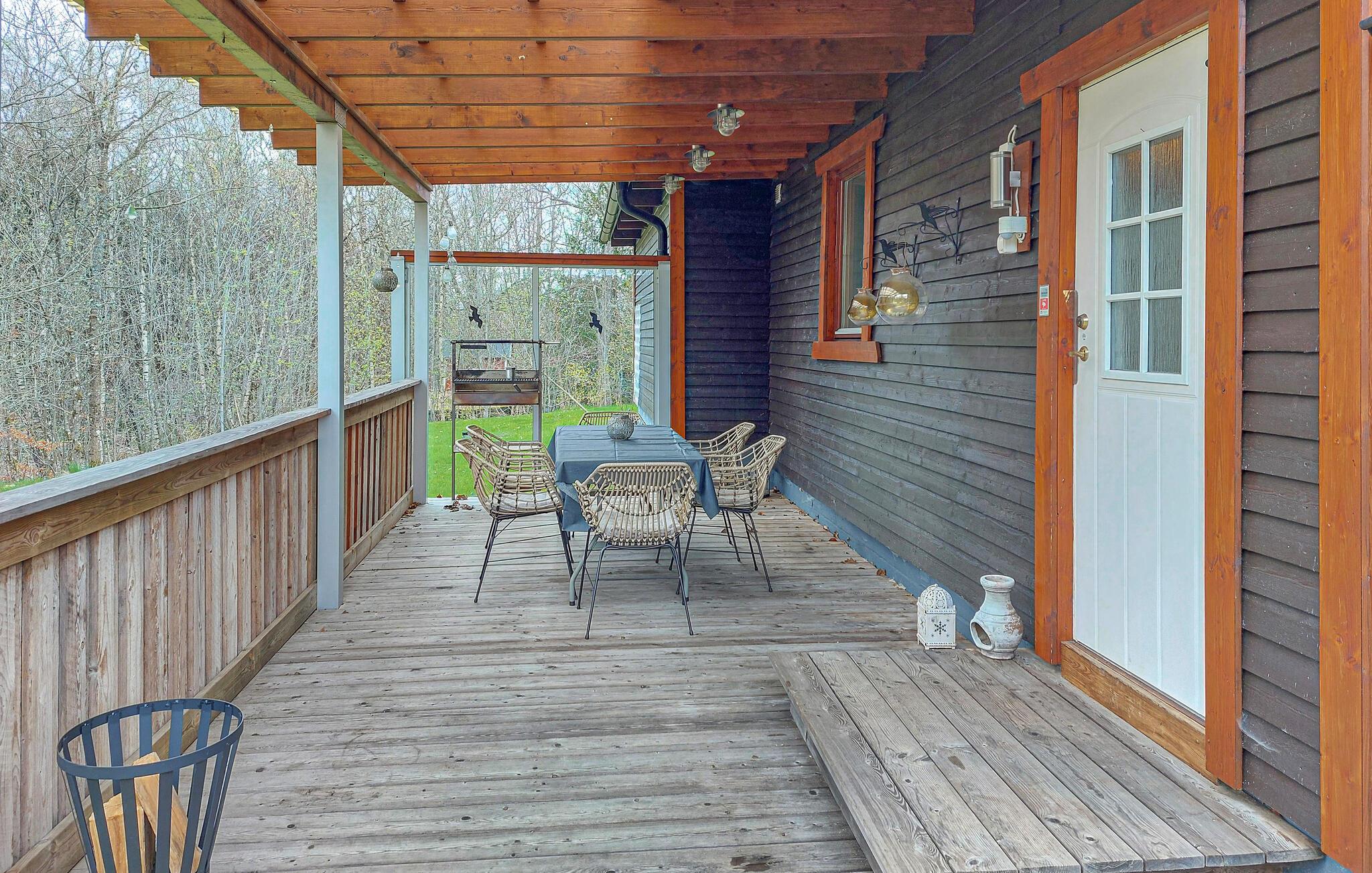 Velkommen til dette skønne hus, der ligger på en stor og dejlig grund midt i naturen, og hvor I får den perfekte base for en ferie med fred, ro og mange gode udflugter. Huset er flot indrettet i varme farver, med gode møbler og et moderne køkken, hvor I kan kræse om livretterne efter en aktiv feriedag. Lad en herlig dag gå på hæld med et lækkert måltid mad i udestuen og sæt jer til rette i stuen, og måske I har en pianist, der kan spille op til fællessang, mens ilden knitrer i brændeovnen?