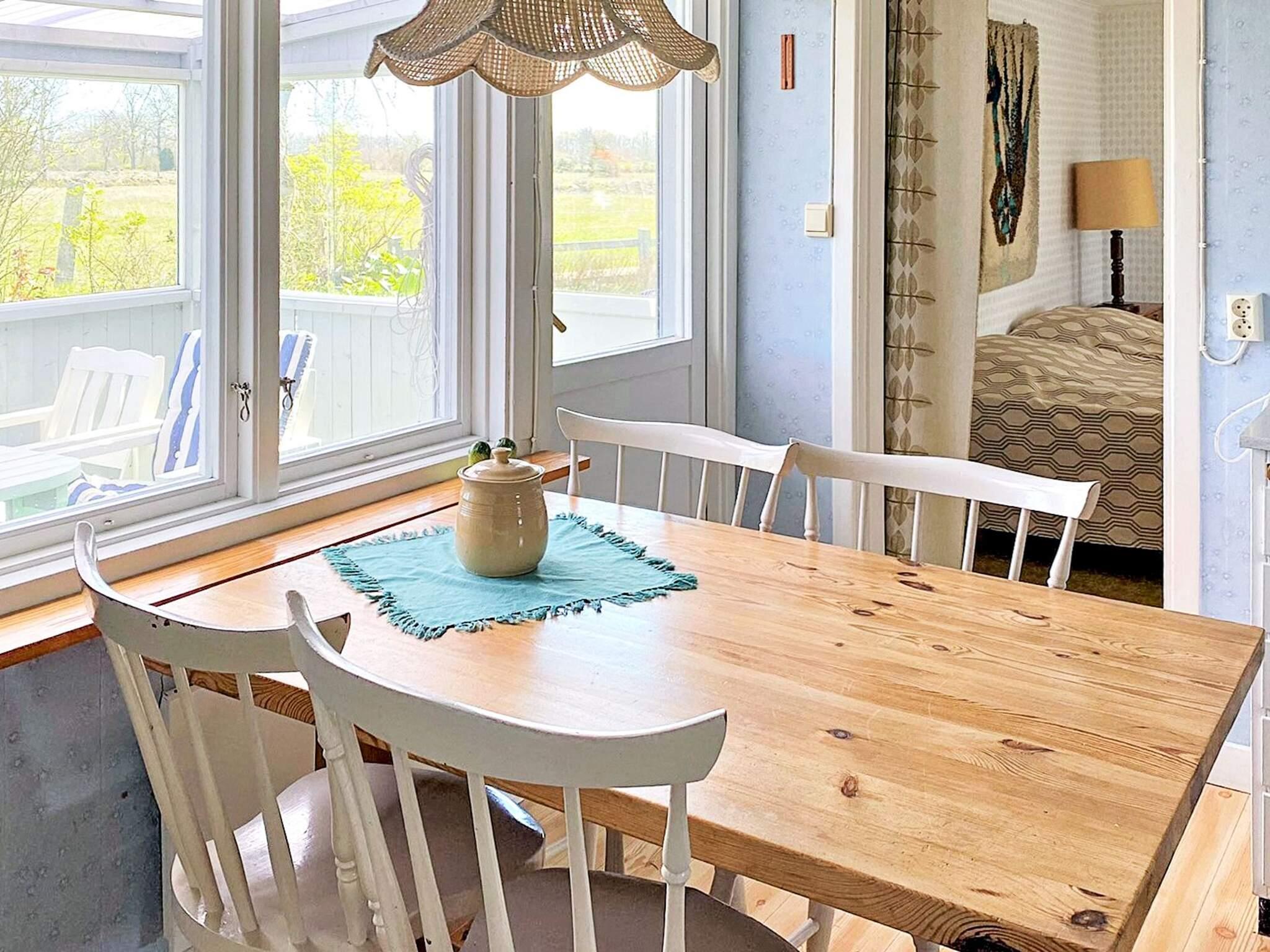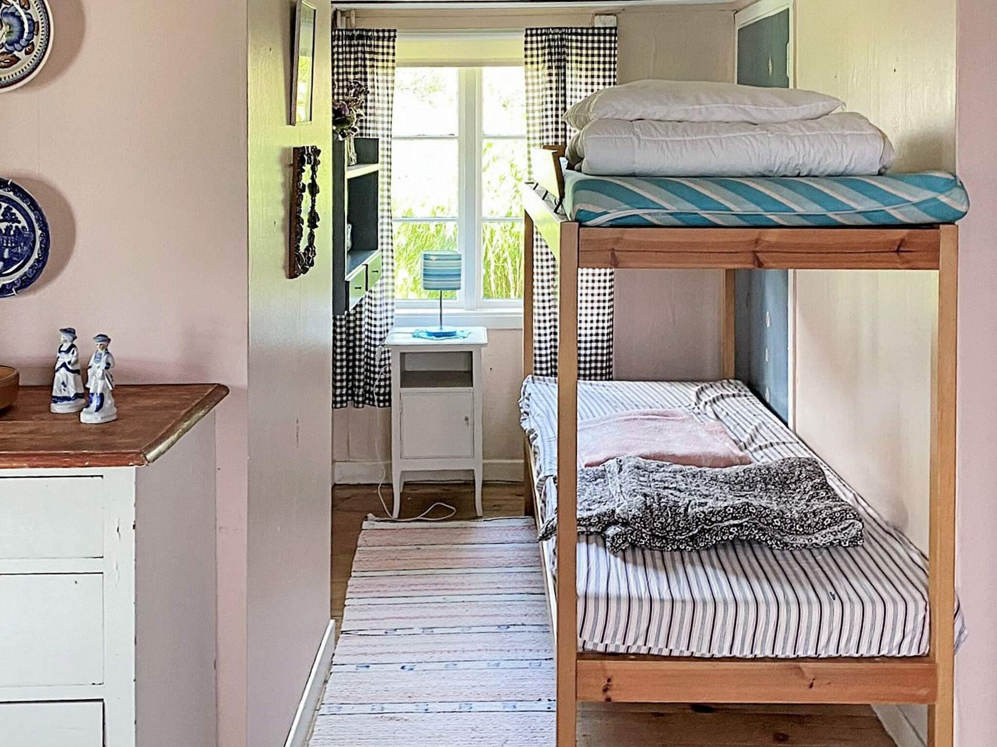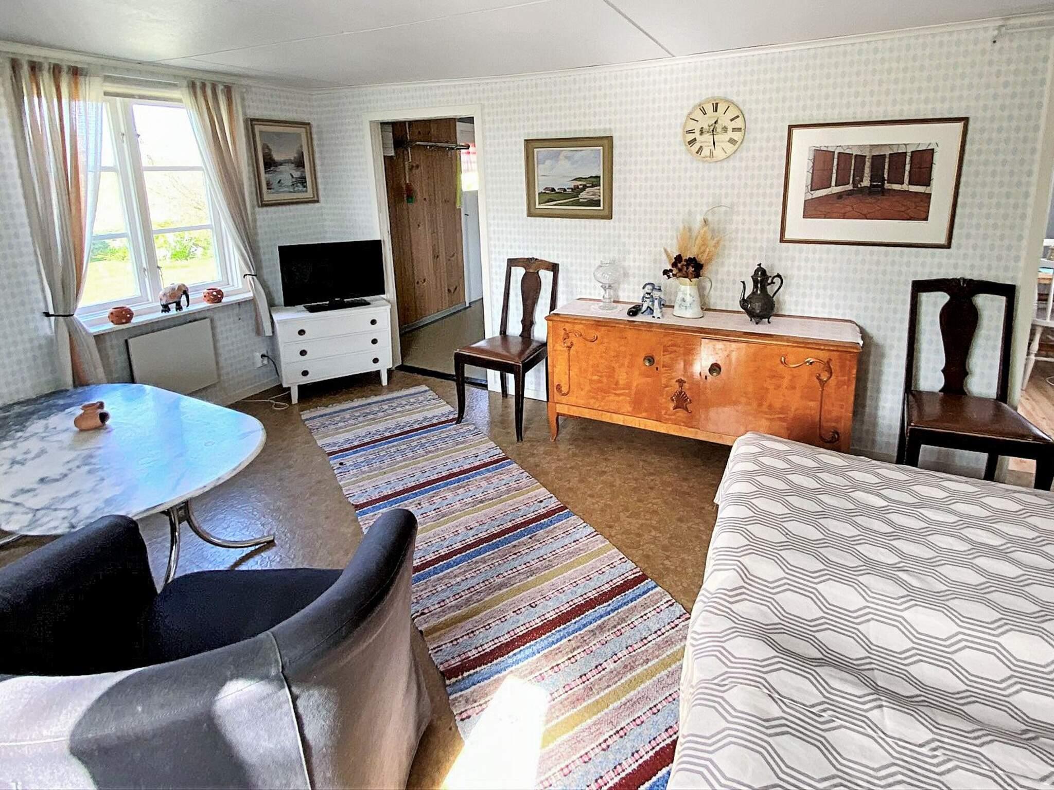 Stugan består av två rum och kök. Köket är enkelt, men luftig och trevligt, med utgång till den inglasade altanen. Det ena rummet är kombinerat vardagsrum och sovrum, med en dubbelsäng och det andra rummet innehåller två våningssängar.