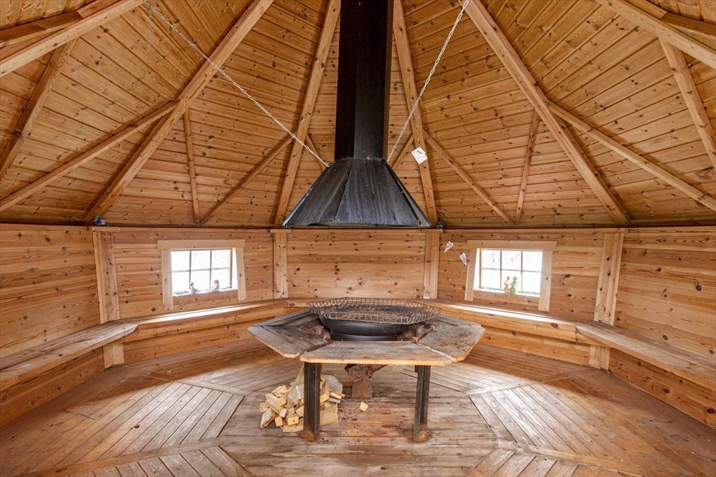 En af de fem hytter er udstyret som “servicehus” hvor man kan låne en vaskemaskine. Der befinder sig også en sauna- og grillhytte på grunden, som kan opvarmes med træ og som kan bruges af alle gæster på grunden. Der kan lånes cykler af gårdejeren.
