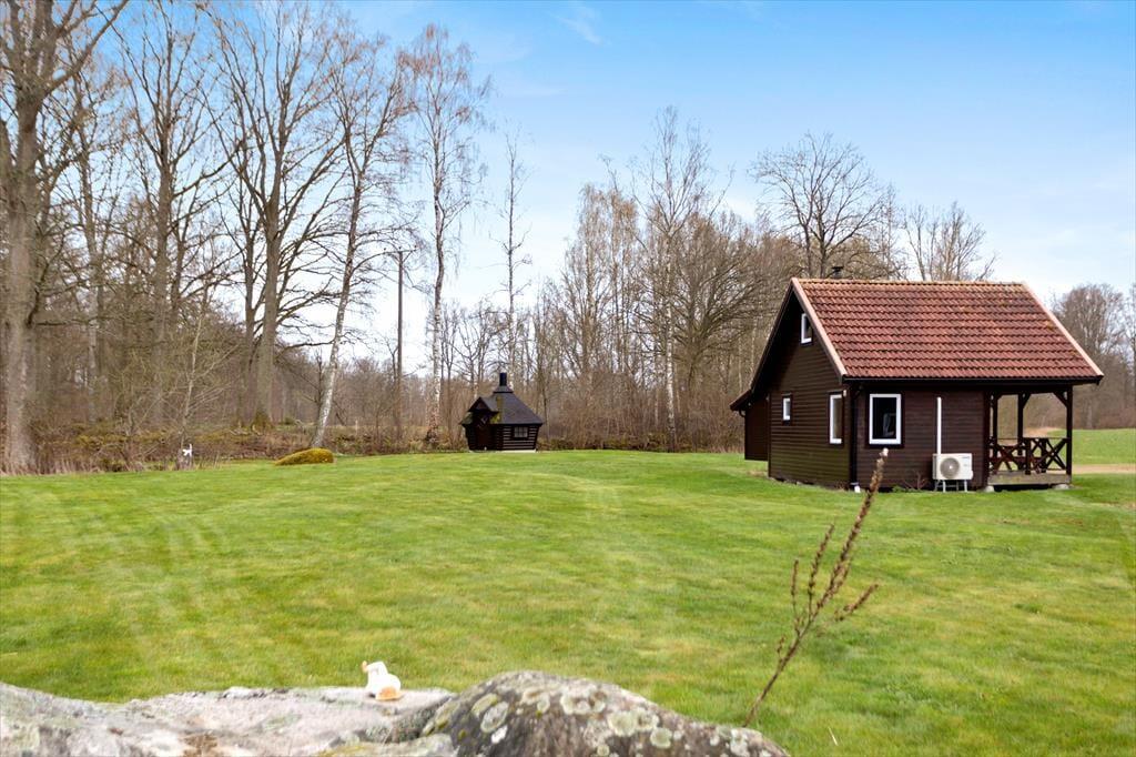 Ca 15 km vest for Karlshamn, i den naturskønne landsby Sandbäck, ligger gården “Börjessongården” med sine 5 feriehytter. Hytterne ligger på en række ved siden af hinanden, ved en lille sø. Hytterne ligger blot 4 km fra havet ved Pukavik og knap 10 km fra paradiset for laksefiskere ved “Laxens Hus” i Mörrum - til Laxens Hus hører også et museum og en god restaurant. Man kan enten handle ind i Mörrum eller i den historiske by Karlshamn, som har en god infrastruktur og byder på mange forskellige restauranter og shoppingmuligheder.