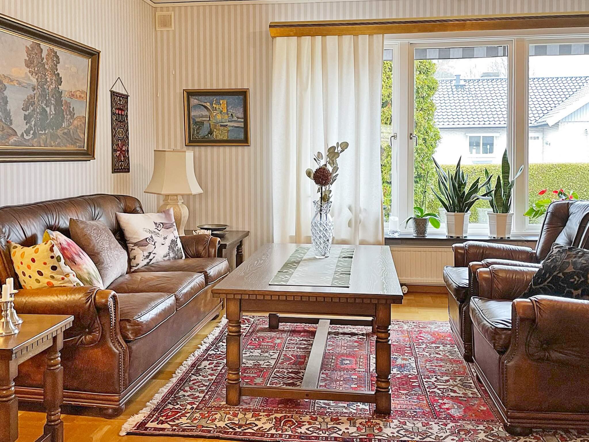 Inomhus möts du av en rymlig hall. På första plan har du ett rymligt kök med matplats. Vidare in till vardagsrummet har du en större soffgrupp och matgrupp även här. Här finns två sovrum båda med dubbelsäng (det ena med 140cm bred säng). Här finns även möjlighet för förvaring. Det större badrummet har du även här med badkar.