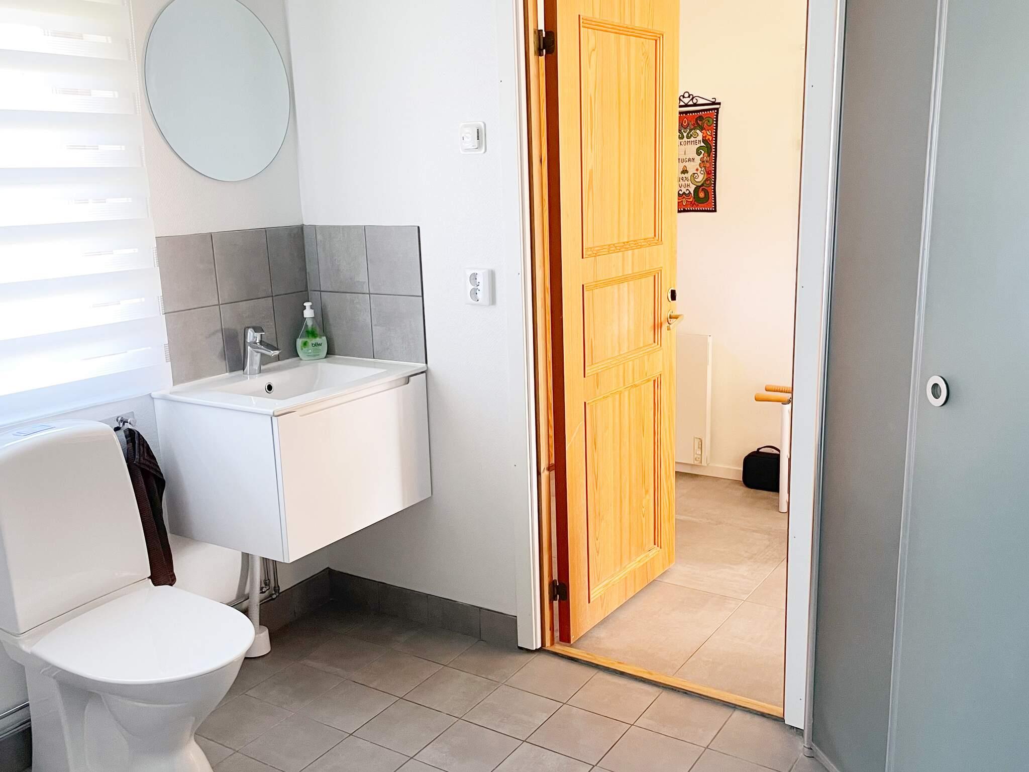 Bad/wc: Vaskemaskine, wc, håndvask, bruser