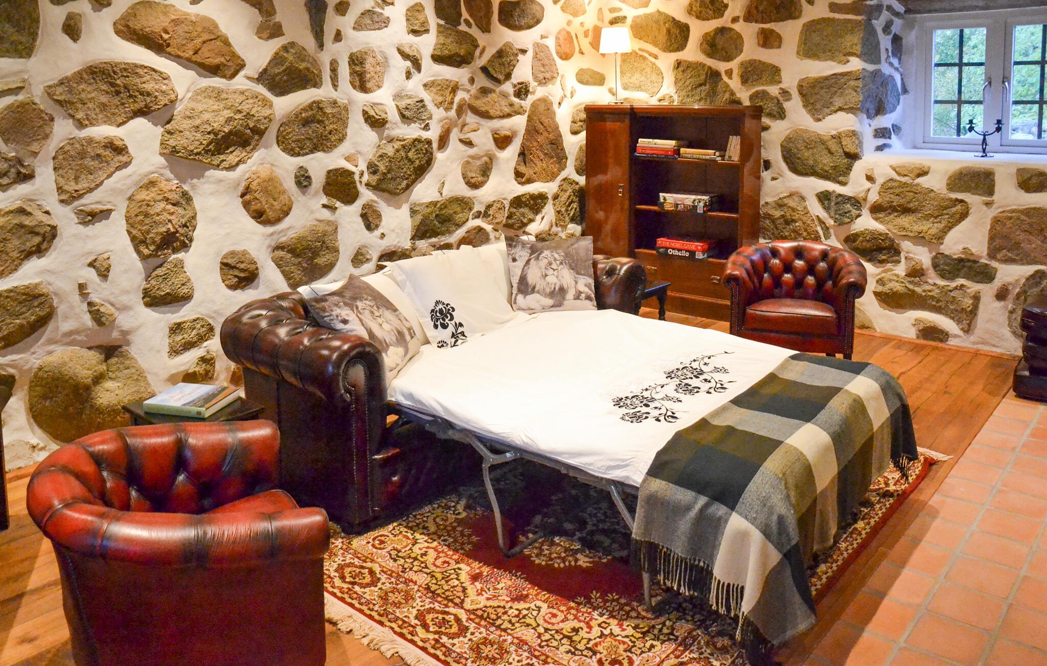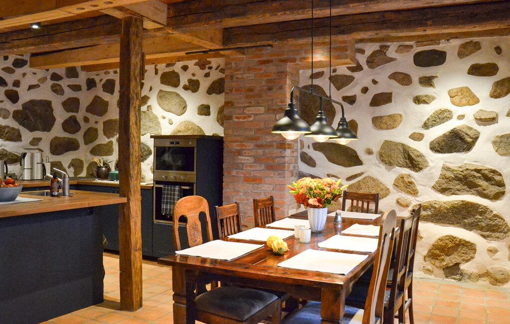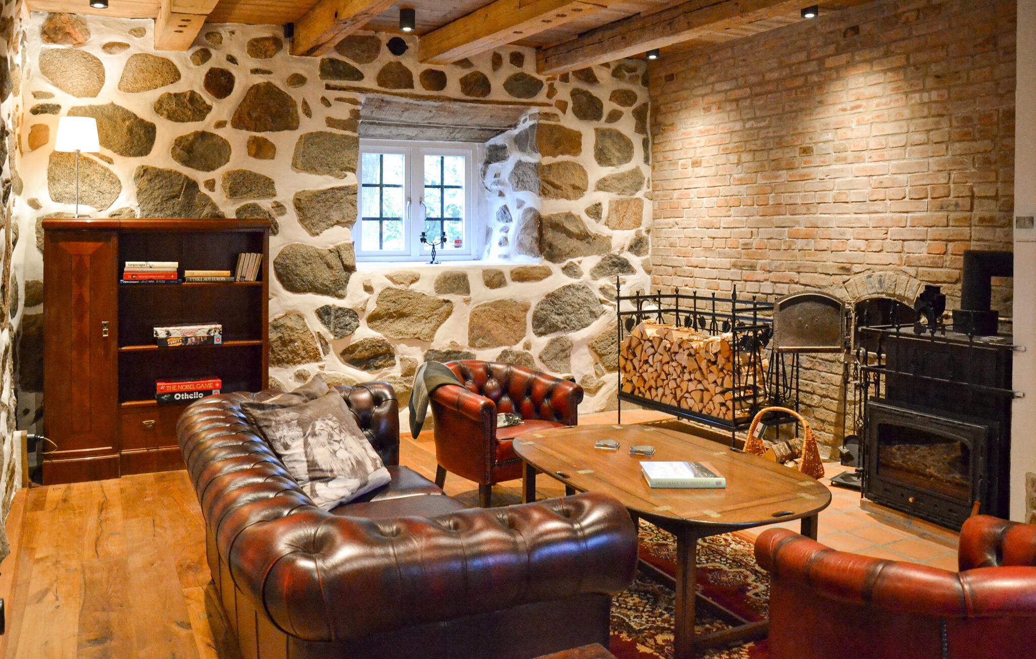 Det historiske hus i Sallerup nær Hörby imponerer med bevarede detaljer og forener traditionel charme med moderne komfort. Store fællesrum og møbler af høj kvalitet giver jer og jeres familie masser af plads til at føle jer godt tilpas. Tilbered lækre måltider i det smukke, landlige køkken, som med rustikke træbjælker og naturstensvægge skaber en varm atmosfære. Nyd jeres fælles måltider ved det rummelige spisebord omgivet af autentisk flair. Slap af i den stilfuldt indrettede opholdsstue, som med sine naturstensvægge og hyggelige møbler udgør en enestående kulisse.