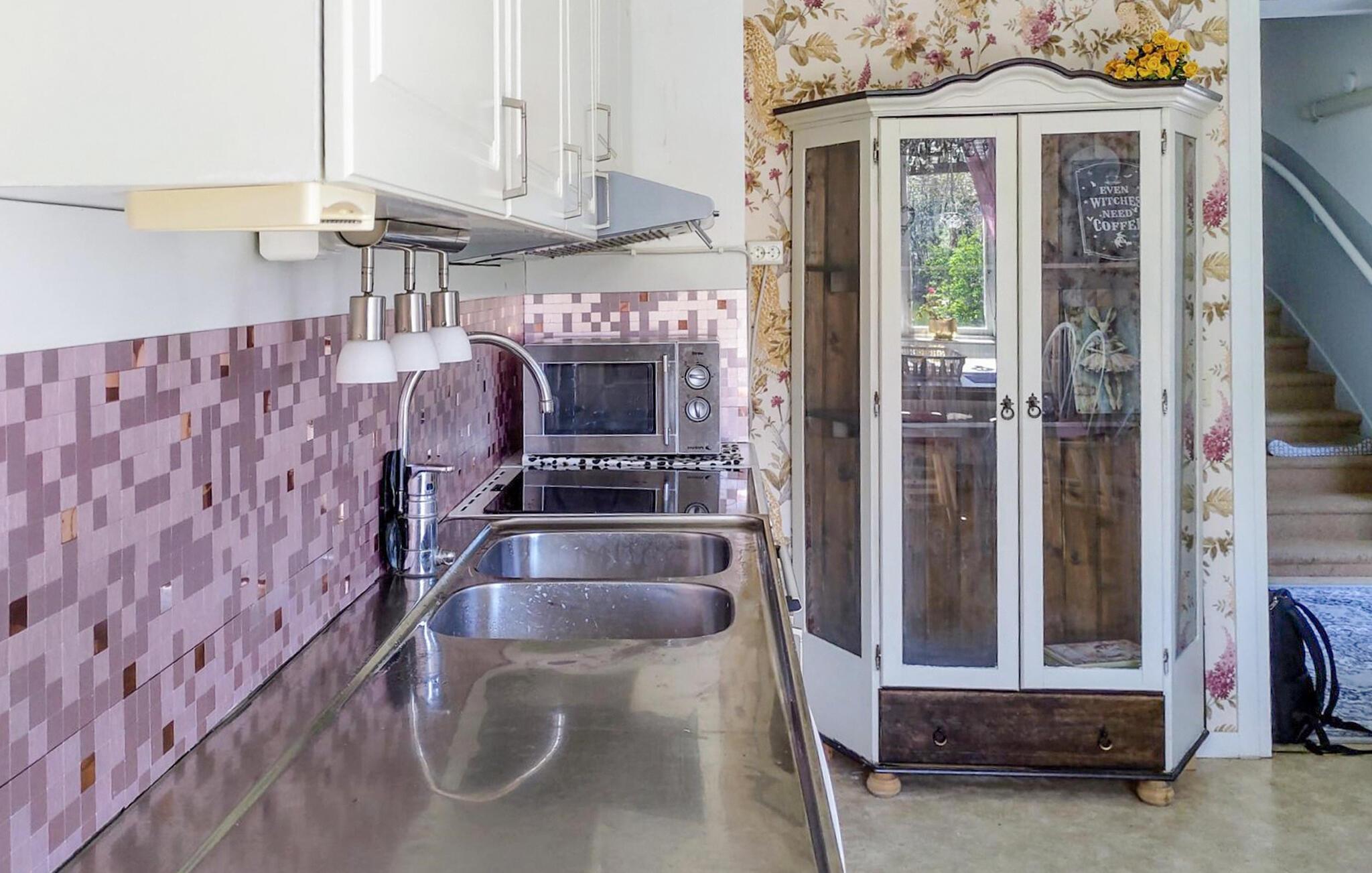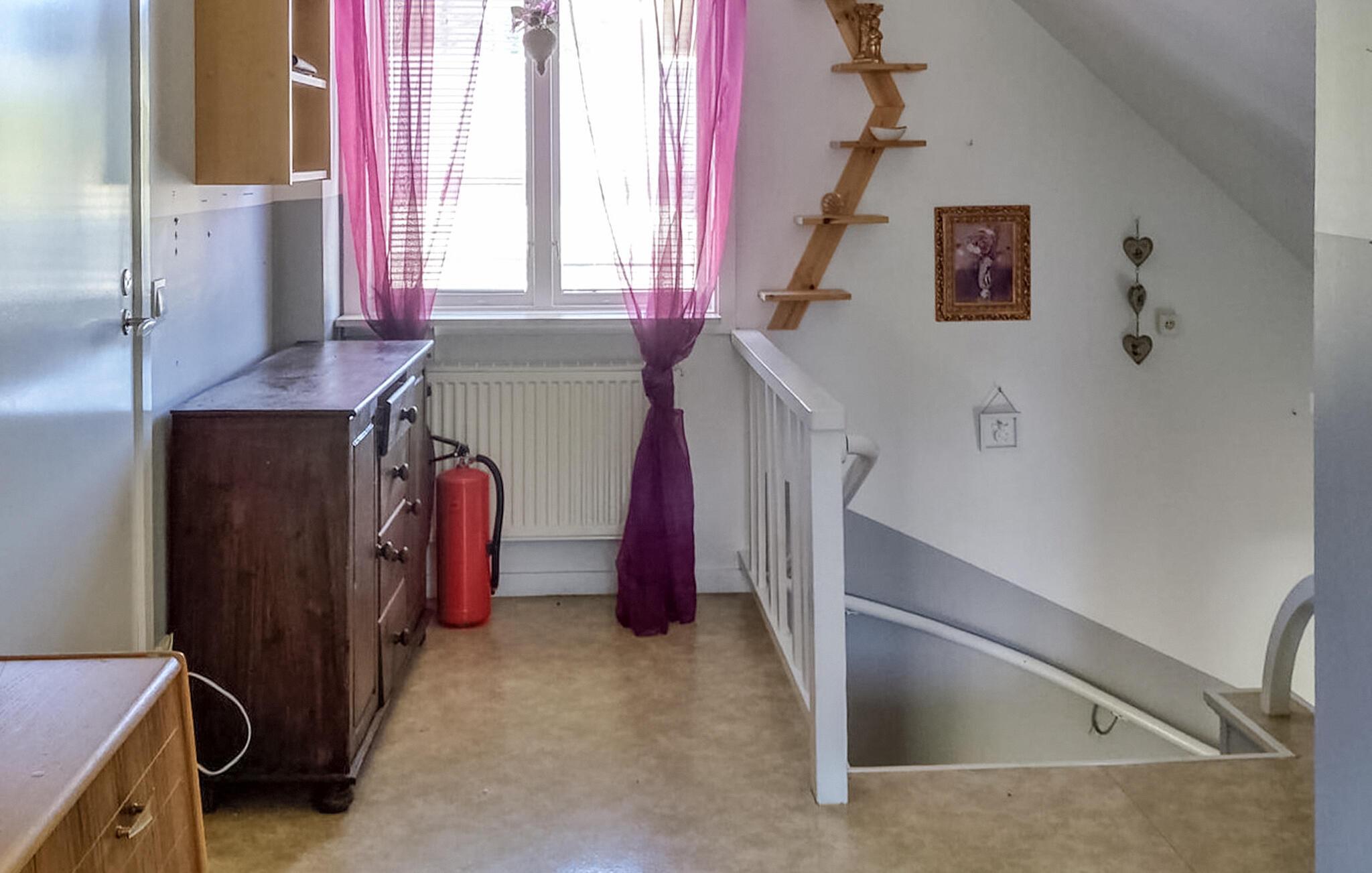 Nyd de rolige omgivelser, den nære kontakt til naturen og de mange udflugtsmuligheder i regionen. Indret jer i det hyggelige interiør, som er præget af smukke detaljer. Hyg jer i sofaen eller gyngestolen, og nyd de lyse rum. Udestuen med sine komfortable siddepladser og det smukke lysindfald er et ideelt sted til læsning, spil eller fælles måltider. Også spisepladsen i køkkenet indbyder til hyggelige stunder med en kop kaffe eller et lækkert morgenmåltid. På kølige dage sørger en brændeovn for behagelig varme.