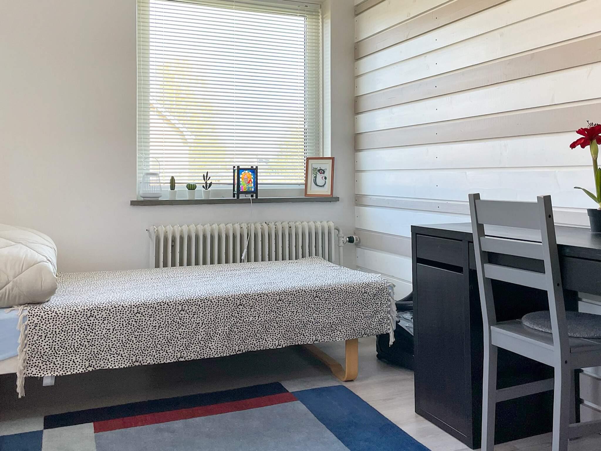 Sovrum nummer ett har du även på nedre plan med en enkelsäng. De övriga två sovrummen har du på övre plan med dubbelsäng respektive en mindre dubbelsäng (140cm).