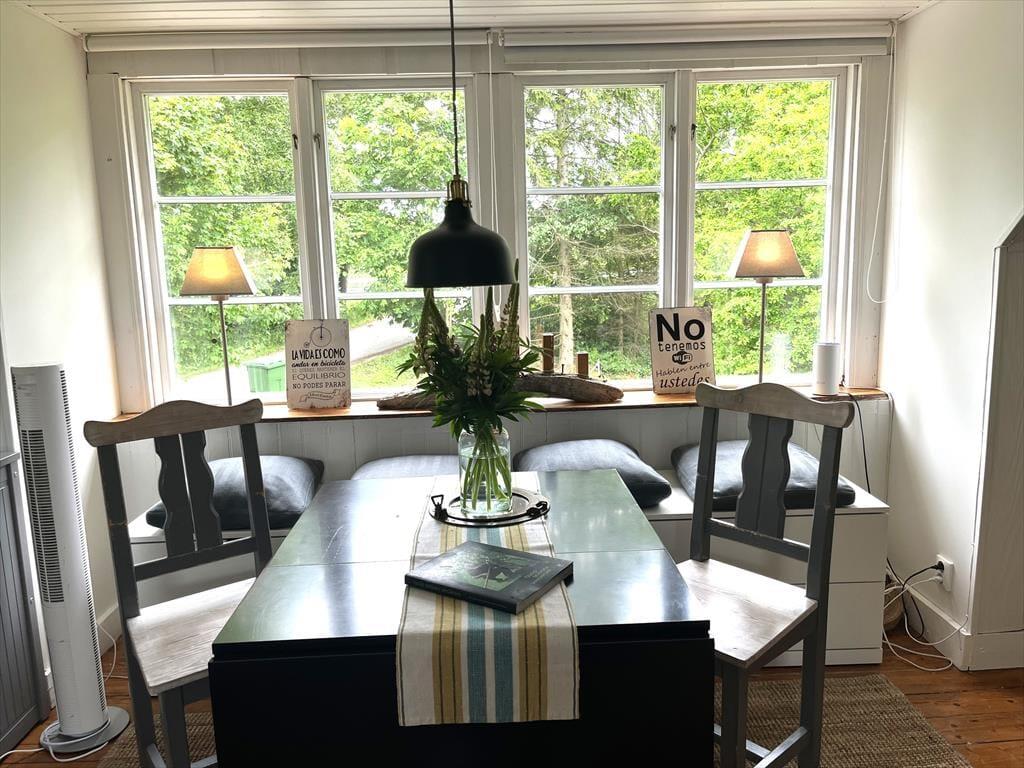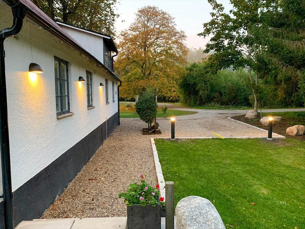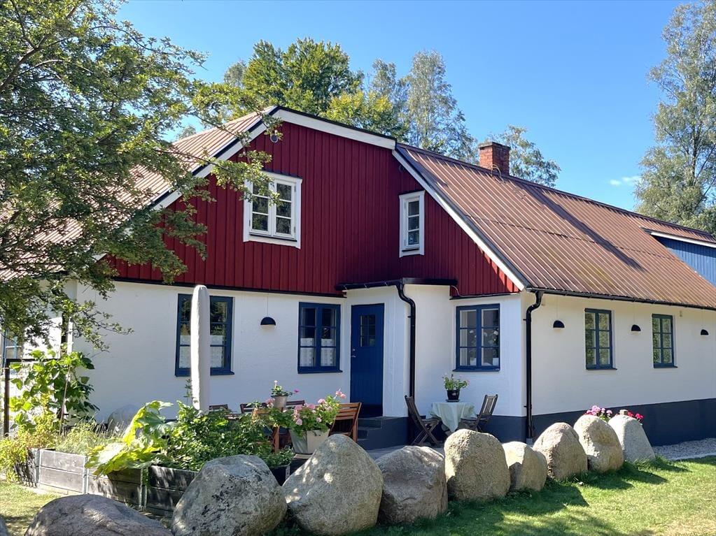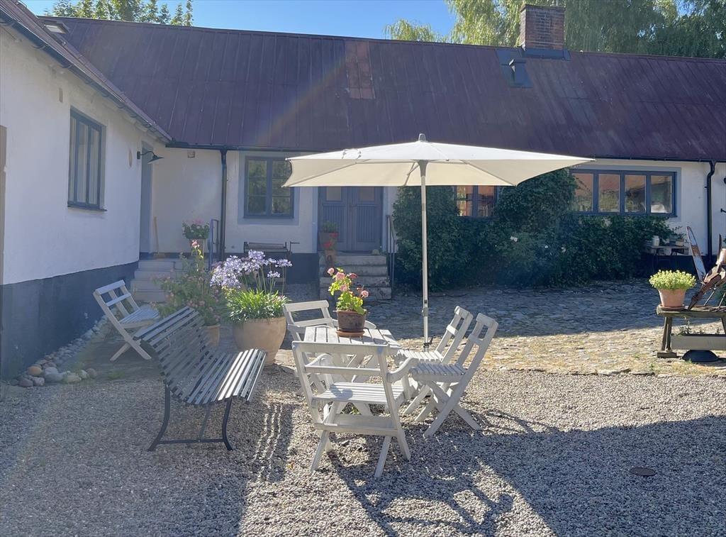 Dette charmerende sommerhus ligger i sidefløjen af en for Skåne typisk bondegård på en 500 m² stor gårdspladsgrund. Ejerne bor lige ved siden af. Du er kun 250 m fra Østersøen med dejlig sandstrand. Stranden kan du som regel nyde helt for dig selv, da der ikke går nogen vej for biler dertil. En børnevenlig badestrand finder du ca. 7 km væk ved “Tobisvikens Camping” i Simrishamn eller i Kivik, ca. 12 km væk. Her er der også en rigtig god legeplads.