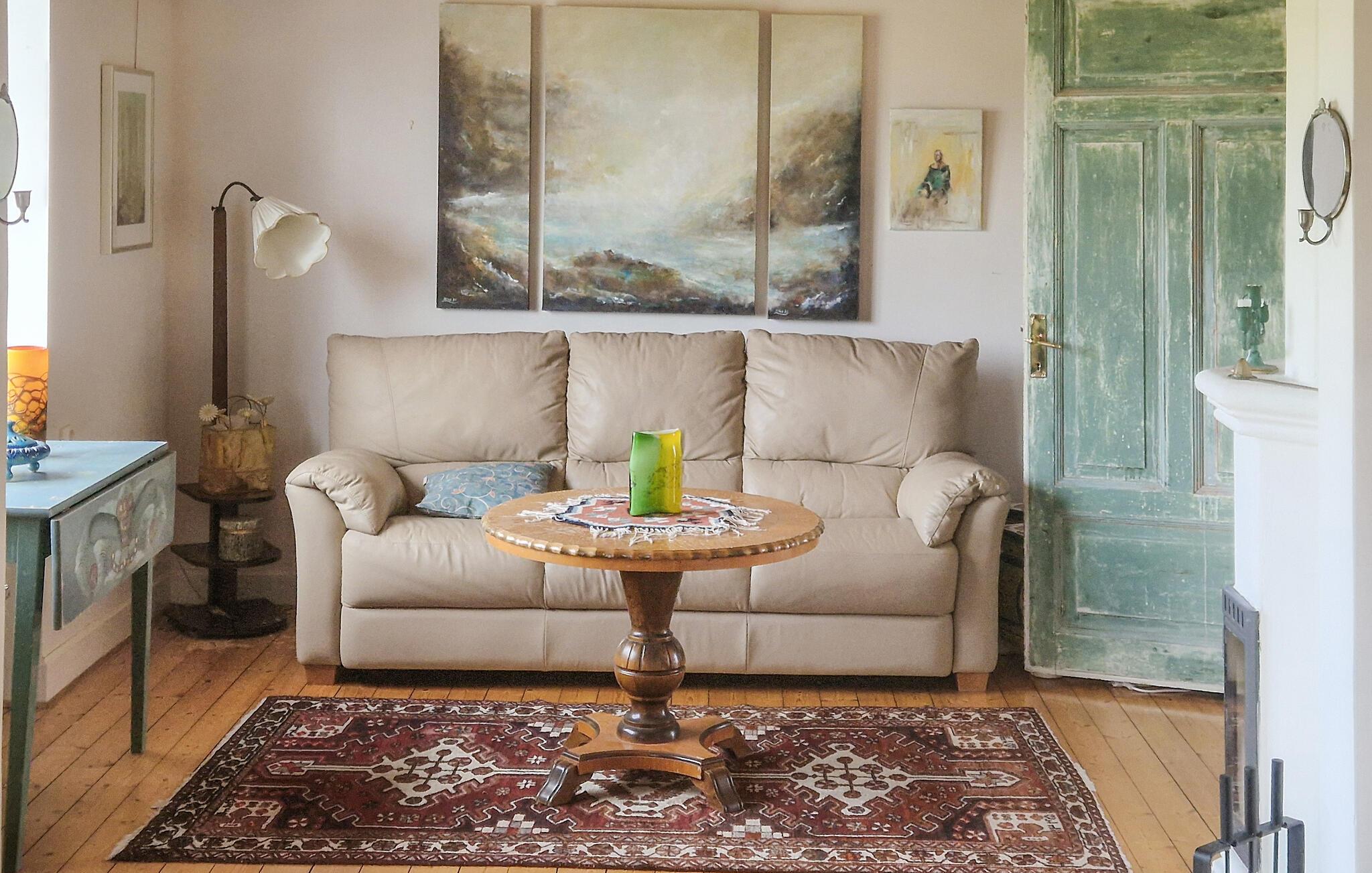 Dette indbydende feriehus med børnevenlig grund venter jer i det charmerende Simrislund område i Simrishamn. De rummelige værelser er velindrettede og tilbyder jer en hyggelig atmosfære til afslappende dage med familien. Nyd jeres morgenmad på balkonen og lad den friske havluft vække jer. Den åbne opholdsstue lægger op til at blive hængende, mens det veludstyrede køkken er ideelt til at tilberede regionale delikatesser. Her finder I ro og tryghed midt i det idylliske landskab i Österlen og kan gå gennem haven over klipperne til stranden.