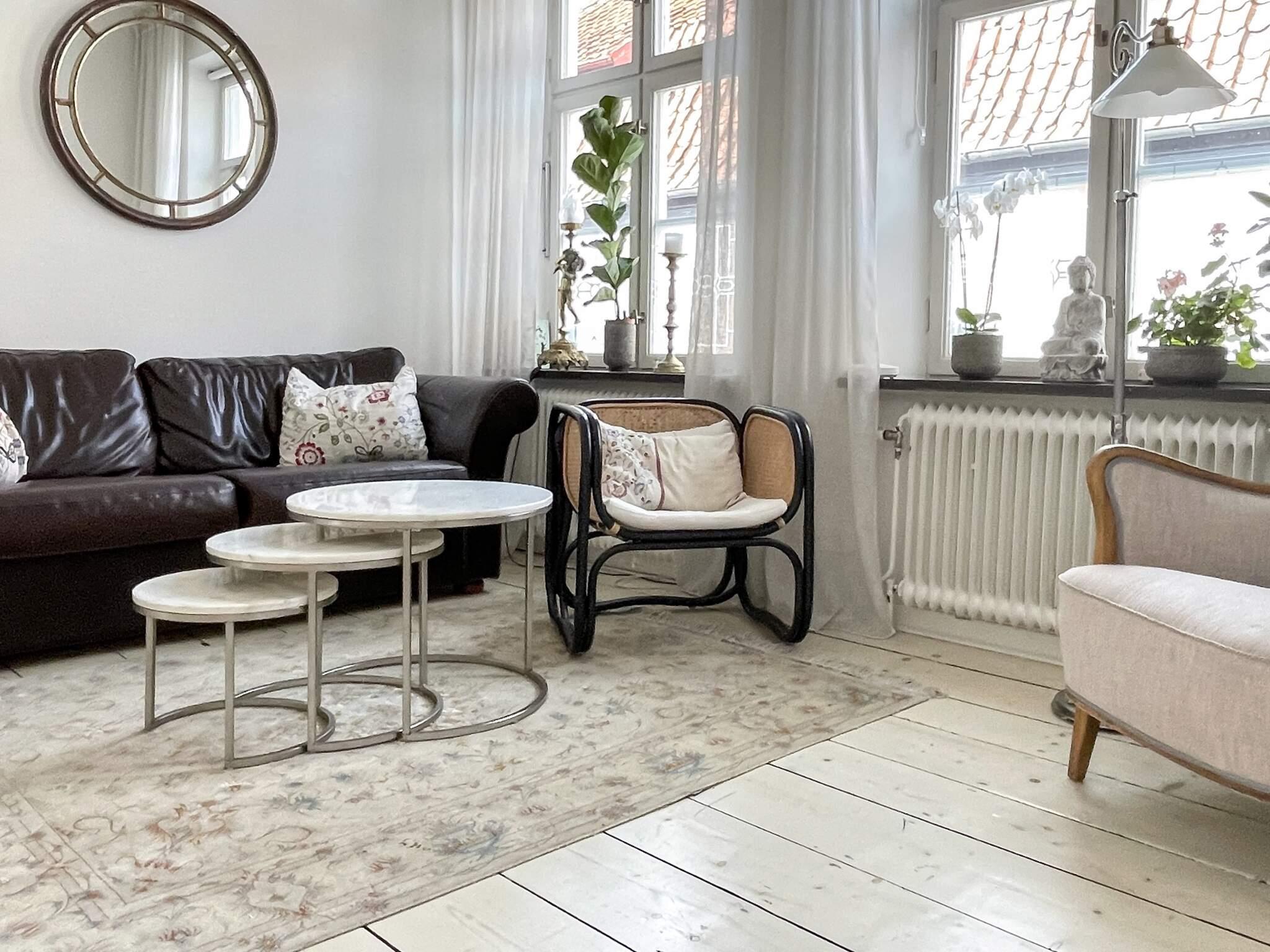 Med flera sällskapsrum och en elegant matsal är det den perfekta platsen att samla vänner och familj. Här finns väldisponerade sovrum med totalt åtta bäddplatser som är bäddade för en god natts sömn. Gemensam ingång till övre plan där det så kallade "annexet" (sovrum) för 4 personer finns. Ett stort och smakfullt badrum, ett extra wc samt alla moderna bekvämligheter som tvättmaskin och torktumlare. Det fullt utrustade köket bjuder in till trevliga middagar och gemenskap. Men det som verkligen gör detta hus speciellt är de vackra detaljerna, som de två stämningsfulla kakelugnarna (får endast användas i samråd med ägaren!) och den mysiga innergården, där du kan njuta av utsikten över en förtrollande kyrka. Det här är en plats för dig som kan värdesätta och vara rädd om både huset och platsen. Respektera privata utrymmen/ markeringar. Lägenheten på övre plan har en permanent hyresgäst. Låt detta charmiga gatuhus bli din oas för en härlig vistelse i Simrishamn!