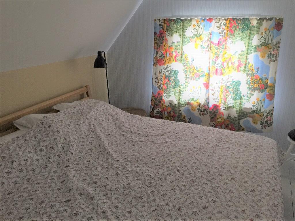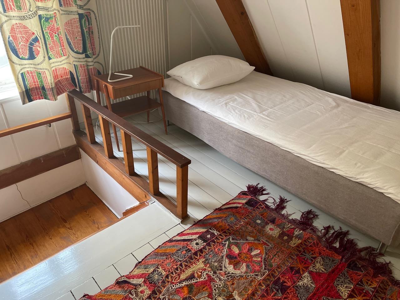 Feriehuset er moderne indrettet, men den gamle charme er bevaret. På førstesalen findes samtlige 3 senge. Der er et soveværelse med en full-size dobbeltseng, og adskilt herfra med et gardin er der en enkeltseng på afsatsen.